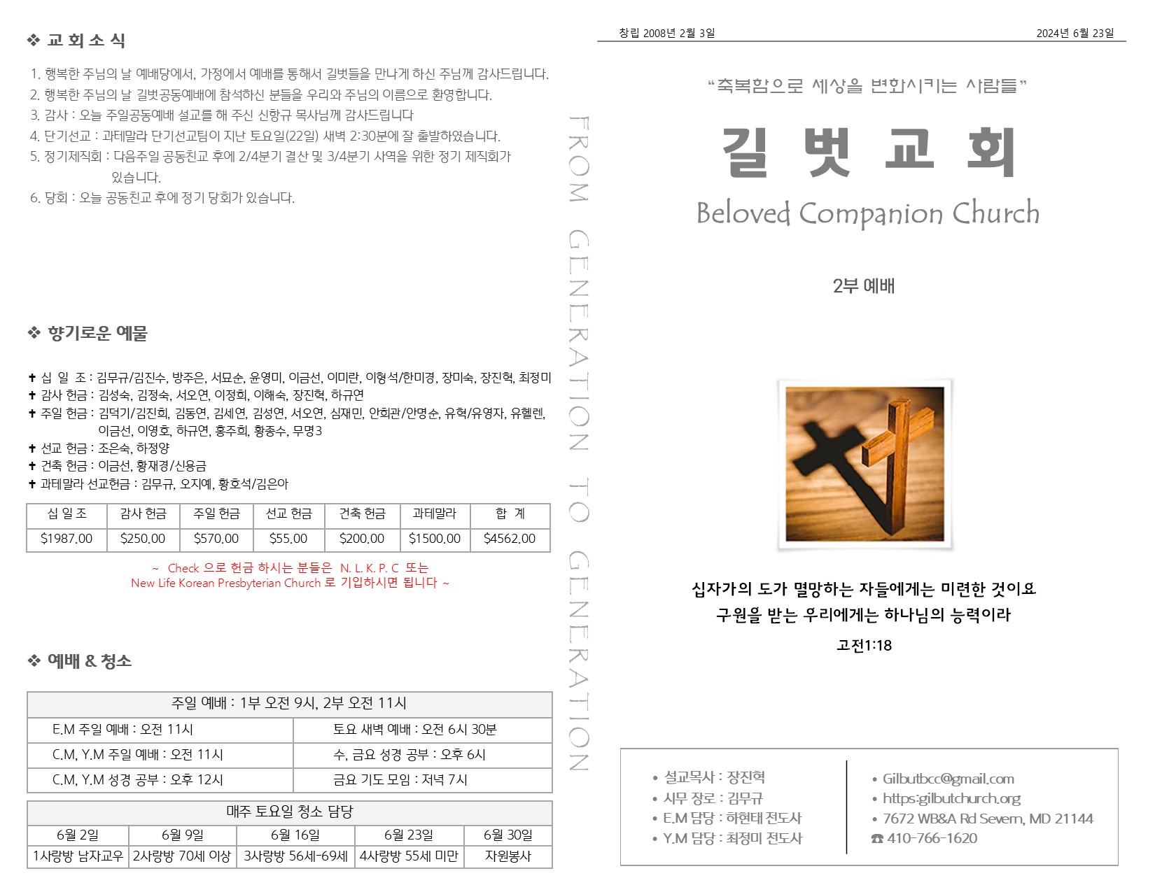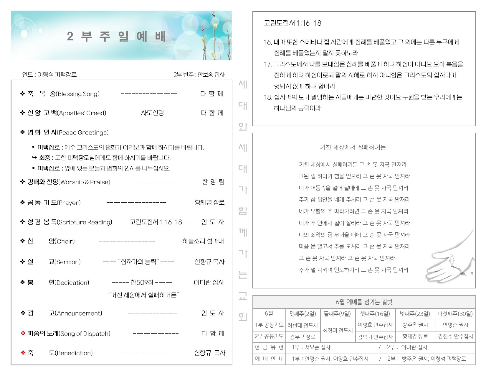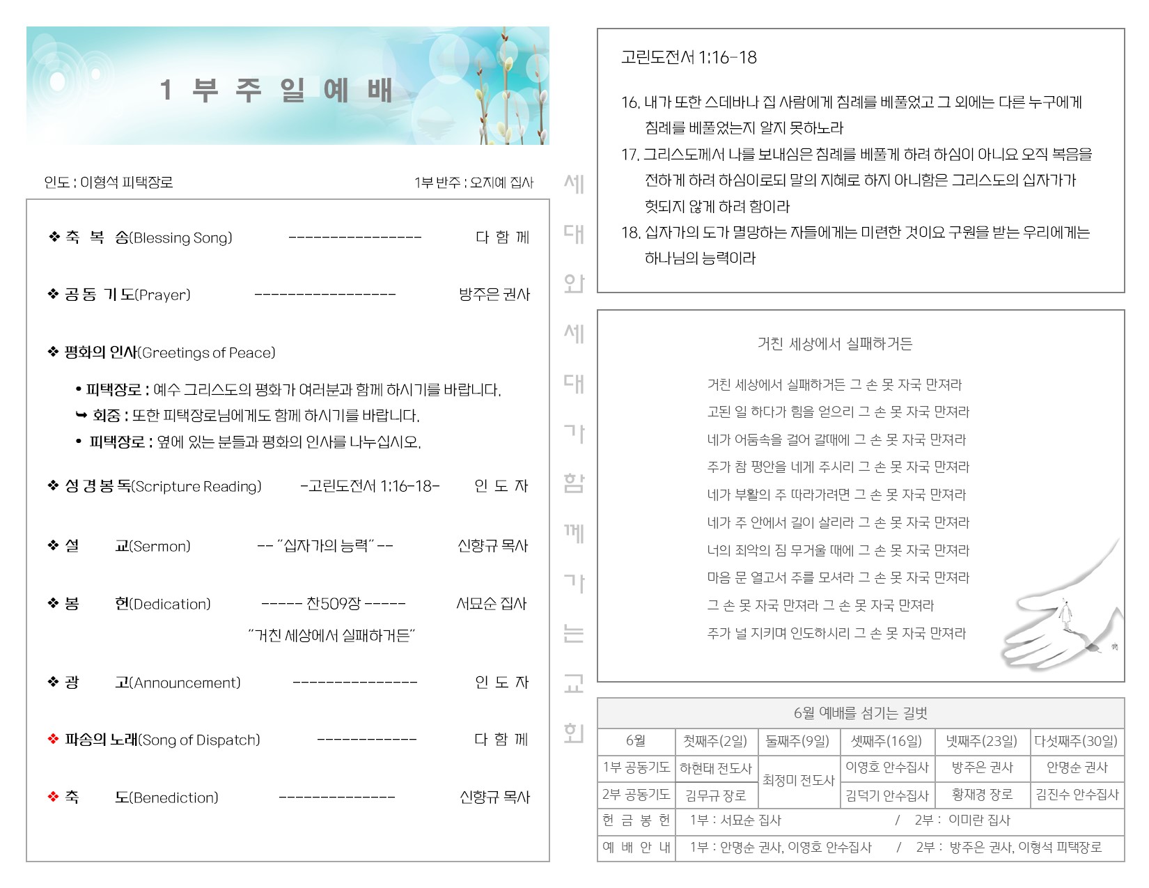 6월 23일 주일 예배 주보 Publish on June 25,2024 | 길벗교회 페이지 정보 작성자 길벗교회 댓글 0건 조회 1,482회 작성일 24-06-25 03:22 목록 본문 6월 23일 주일 예배 주보 이전글6월 30일 주일 예배 주보 24.07.02 다음글6월 16일 주일 예배 주보 24.06.18 댓글 0 댓글목록 등록된 댓글이 없습니다. 목록