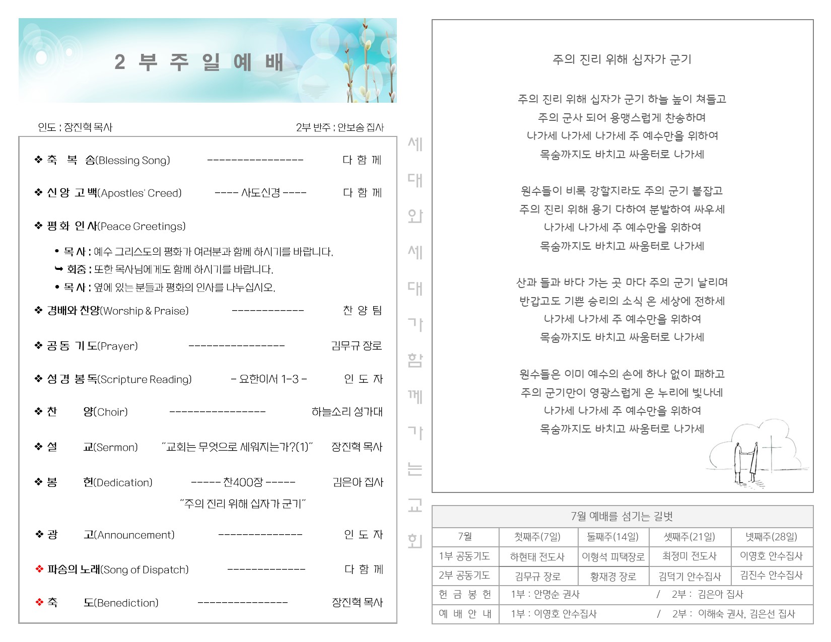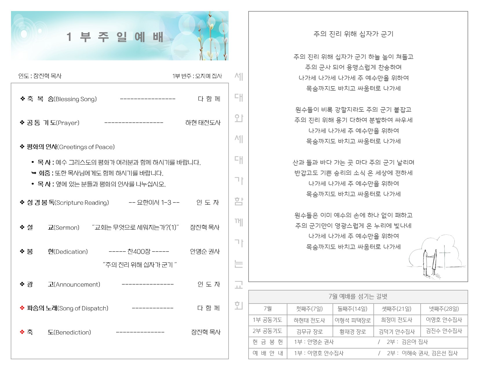 7월 7일 주일 예배 주보 Publish on July 09,2024 | 길벗교회 페이지 정보 작성자 길벗교회 댓글 0건 조회 1,090회 작성일 24-07-09 03:47 목록 본문 7월 7일 주일 예배 주보 이전글7월 14일 주일 예배 주보 24.07.17 다음글6월 30일 주일 예배 주보 24.07.02 댓글 0 댓글목록 등록된 댓글이 없습니다. 목록