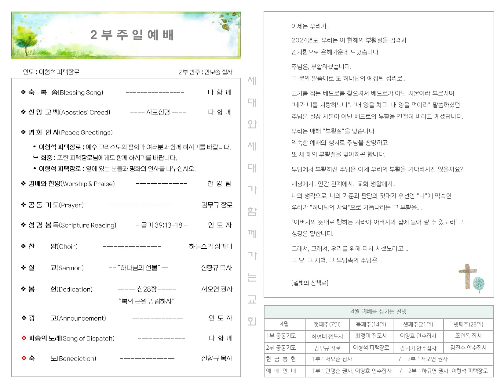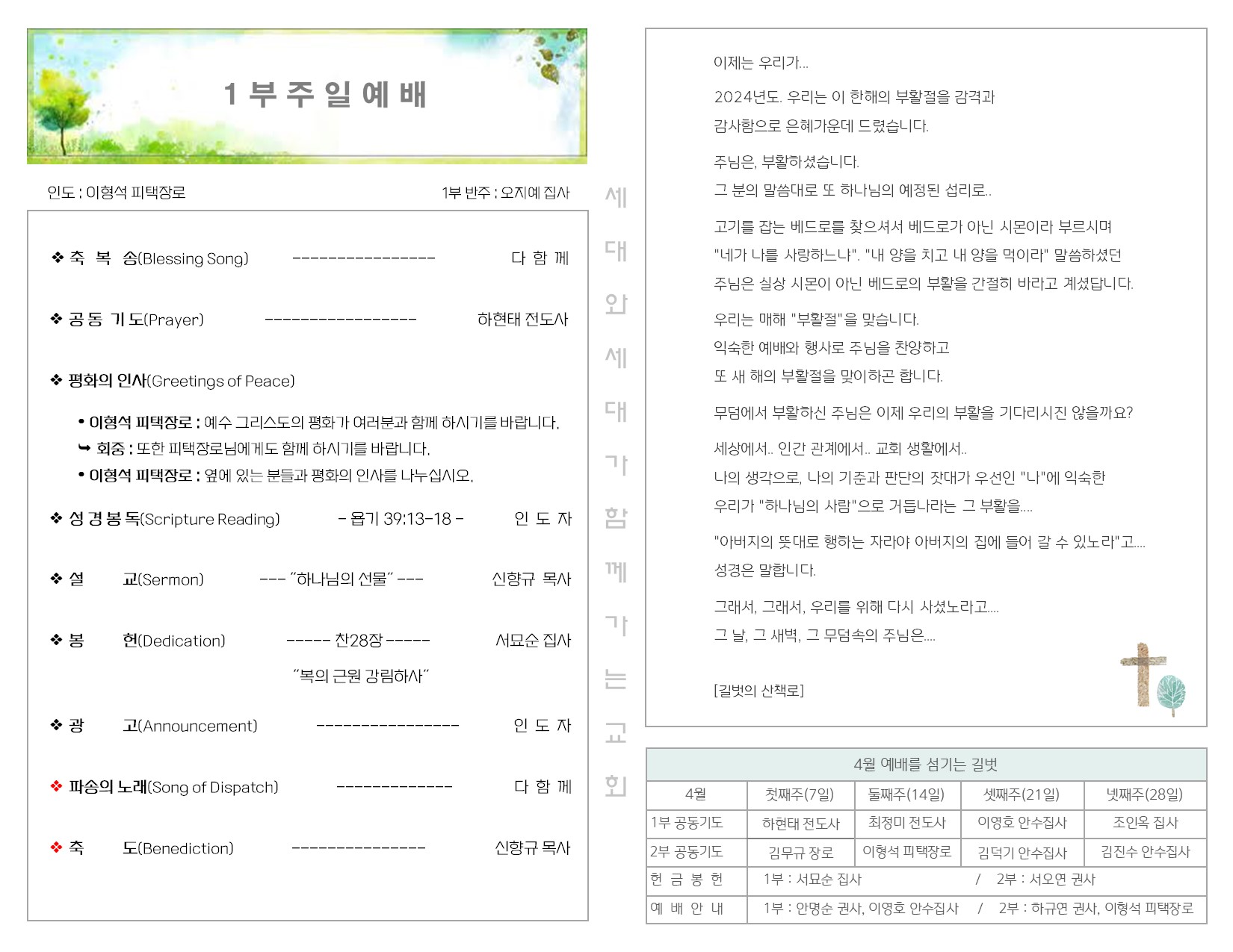 4월 7일 주일예배 주보 Publish on April 08,2024 | 길벗교회 페이지 정보 작성자 길벗교회 댓글 0건 조회 1,461회 작성일 24-04-08 05:12 목록 본문 4월 7일 주일 예배 주보 이전글4월 14일 주일 예배 주보 24.04.18 다음글3월 31일 부활주일 예배 주보 24.04.02 댓글 0 댓글목록 등록된 댓글이 없습니다. 목록