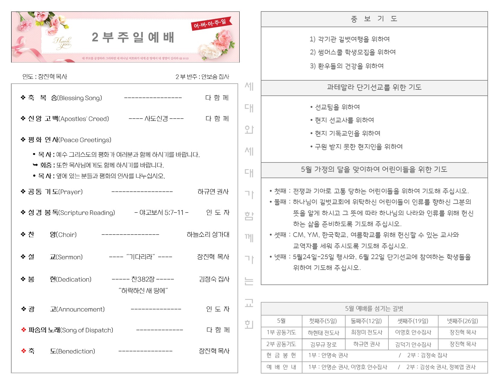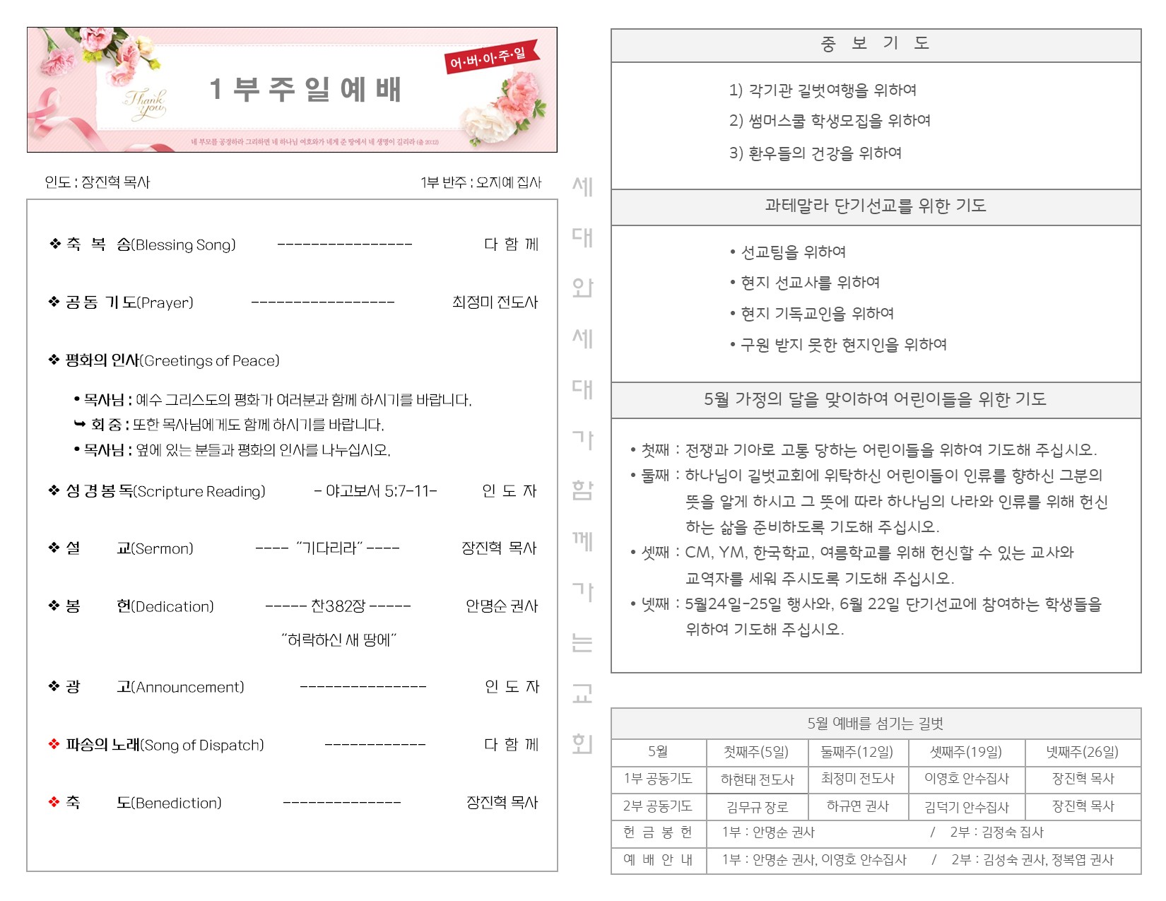 5월 12일 주일 예배 주보 Publish on May 14,2024 | 길벗교회 페이지 정보 작성자 길벗교회 댓글 0건 조회 2,441회 작성일 24-05-14 05:41 목록 본문 5월 12일 주일 예배 주보 이전글5월 19일 주일 예배 주보 24.05.21 다음글5월 5일 주일 예배 주보 24.05.06 댓글 0 댓글목록 등록된 댓글이 없습니다. 목록