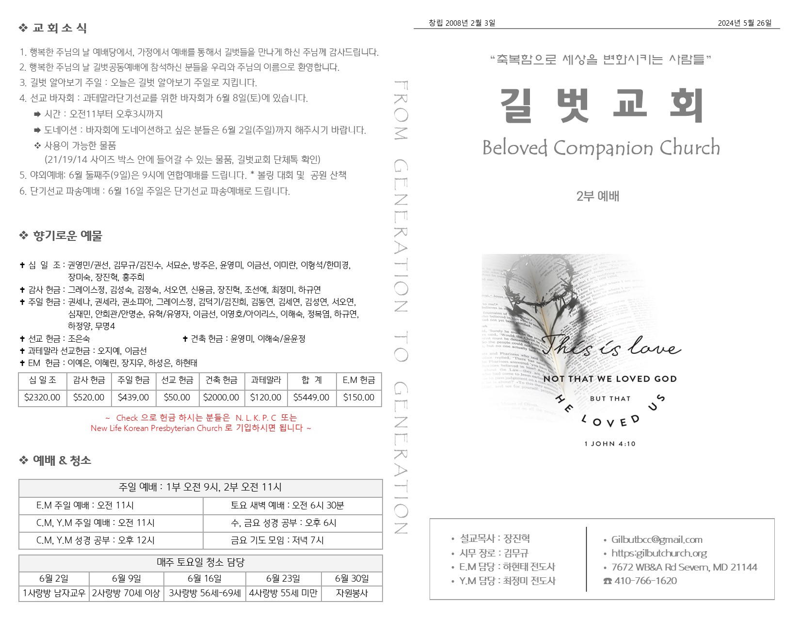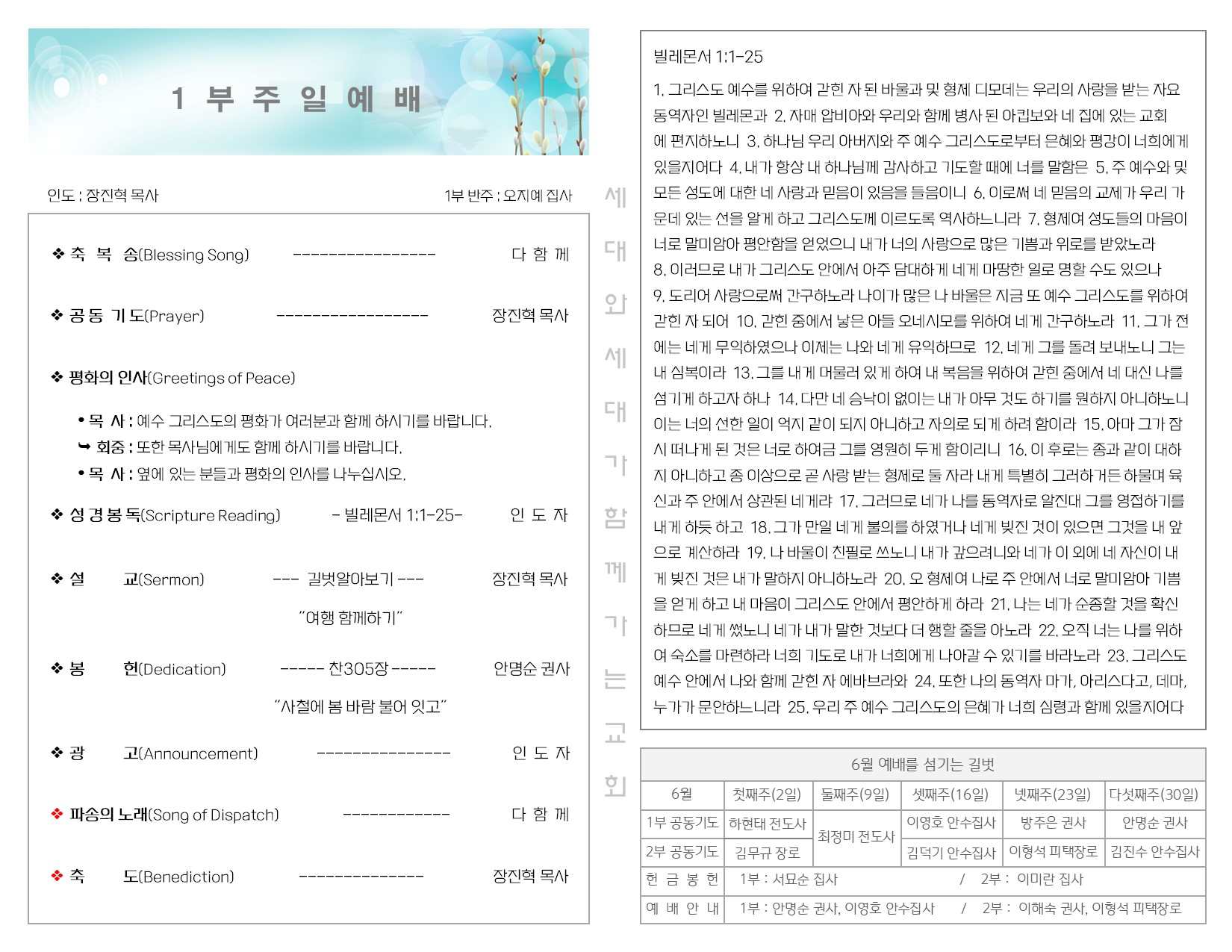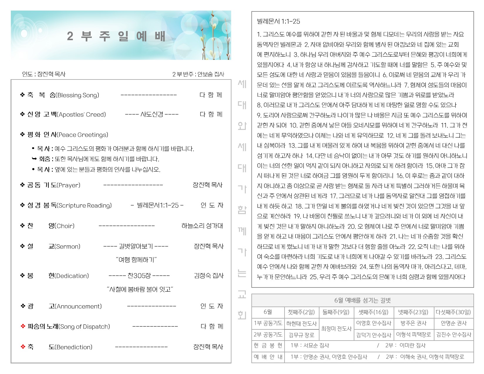 5월 26일 주일 예배 주보 Publish on May 28,2024 | 길벗교회 페이지 정보 작성자 길벗교회 댓글 0건 조회 2,055회 작성일 24-05-28 04:09 목록 본문 5월 26일 주일 예배 주보 이전글6월 2일 주일 예배 주보 24.06.04 다음글5월 19일 주일 예배 주보 24.05.21 댓글 0 댓글목록 등록된 댓글이 없습니다. 목록