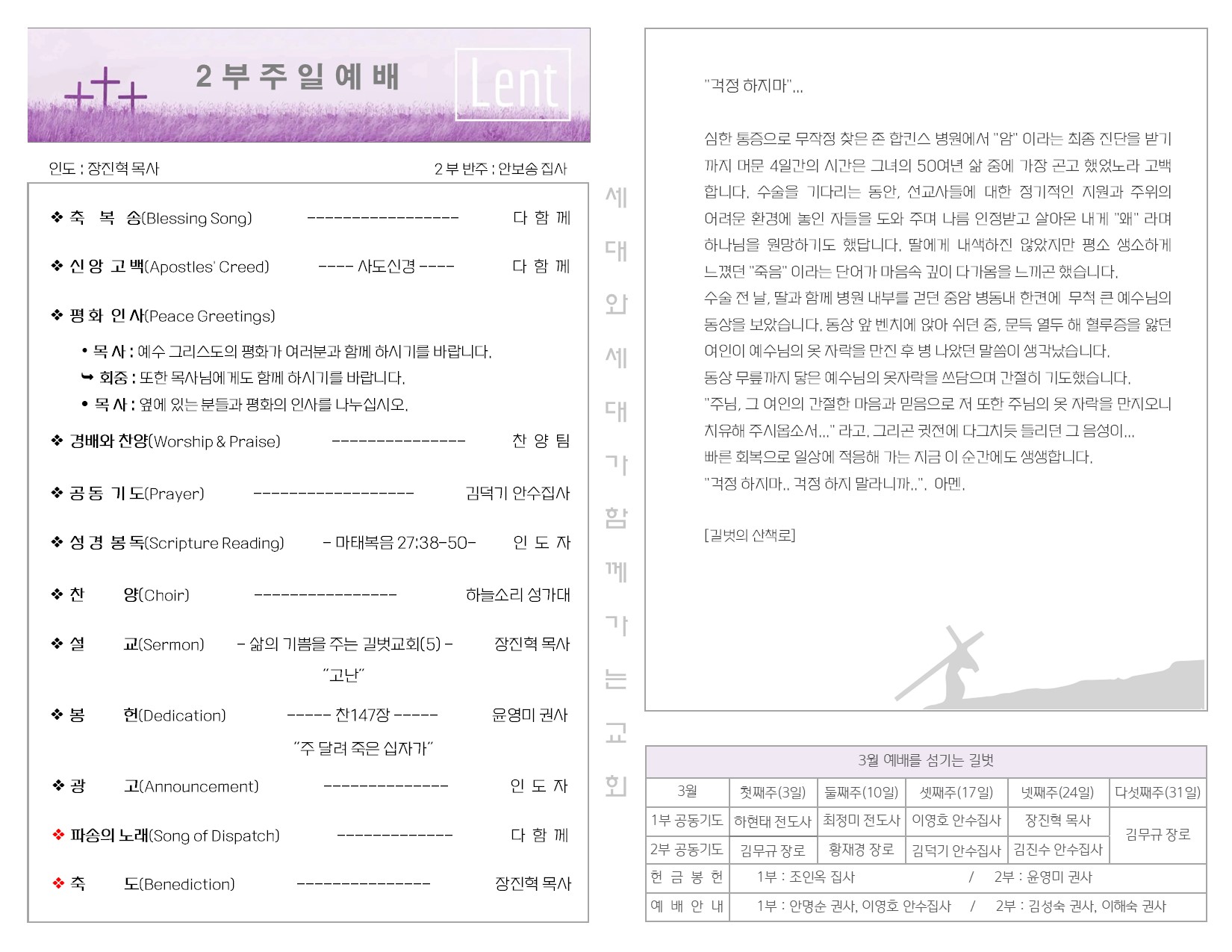 3월 17일 주일 예배 주보 Publish on March 19,2024 | 길벗교회 페이지 정보 작성자 길벗교회 댓글 0건 조회 1,815회 작성일 24-03-19 04:48 목록 본문 3월 17일 주일 예배 주보 이전글3월 24일 주일예배 주보 24.03.26 다음글3월 10일 주일 예배 주보 24.03.12 댓글 0 댓글목록 등록된 댓글이 없습니다. 목록