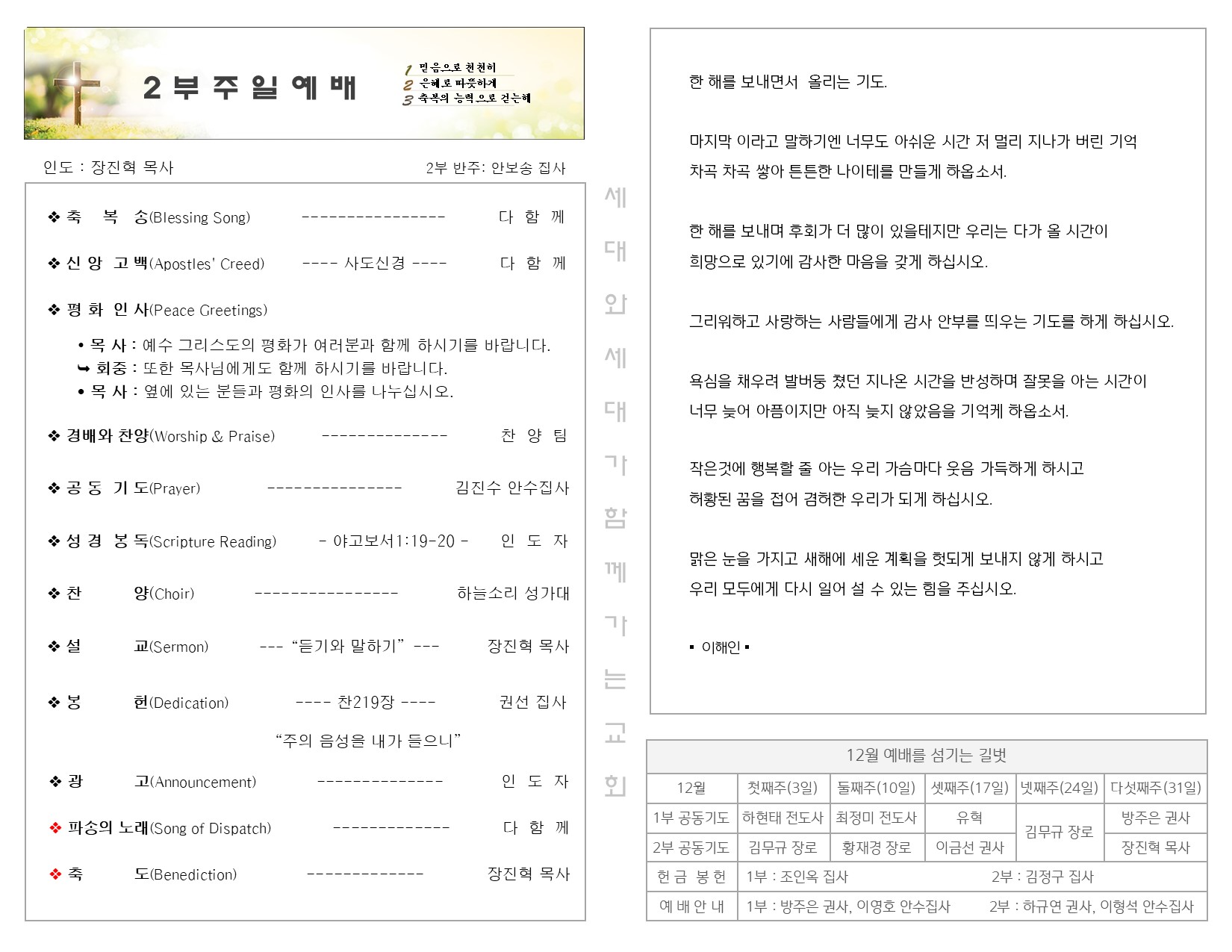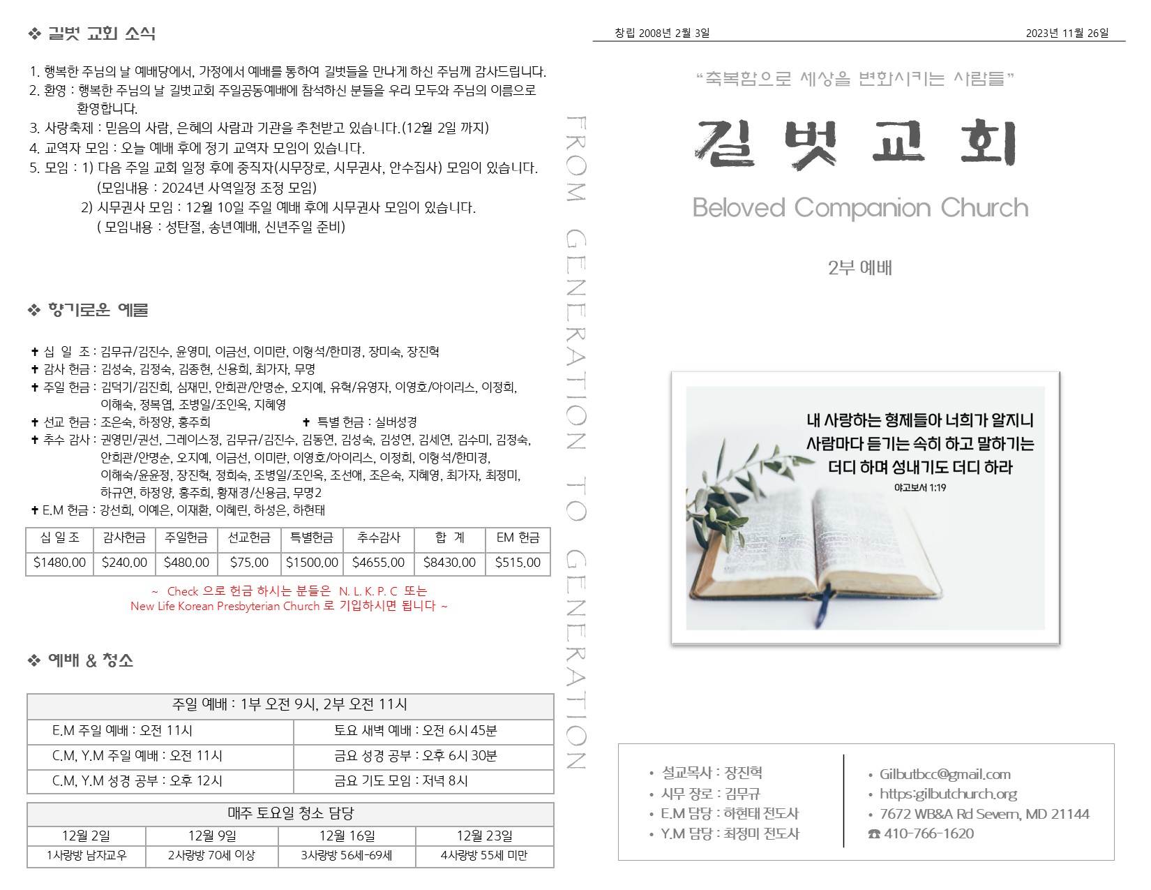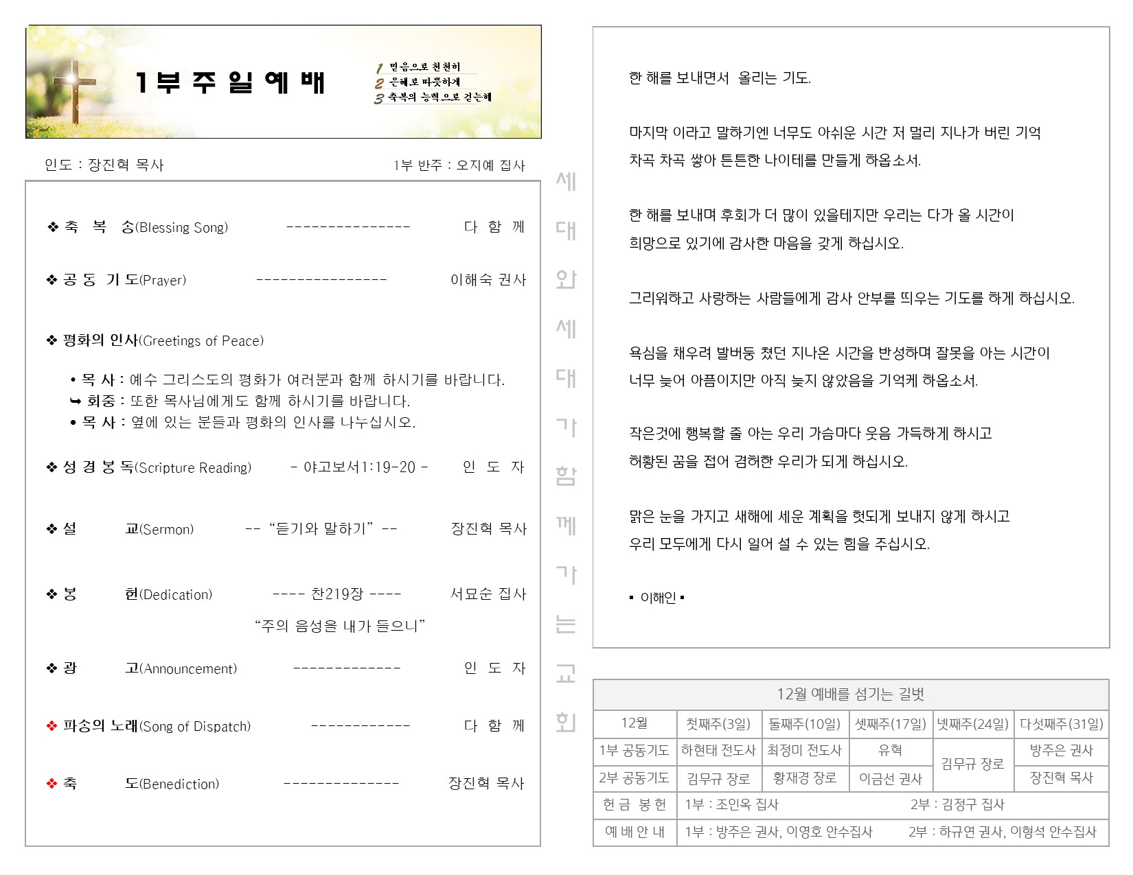 11월 26일 주일 예배 주보 Publish on November 28,2023 | 길벗교회 페이지 정보 작성자 길벗교회 댓글 0건 조회 2,373회 작성일 23-11-28 05:17 목록 본문 11월 26일 주일 예배 주보 이전글12월 3일 주일 예배 주보 23.12.05 다음글11월 26일 추수감사 주일 예배 주보 23.11.21 댓글 0 댓글목록 등록된 댓글이 없습니다. 목록