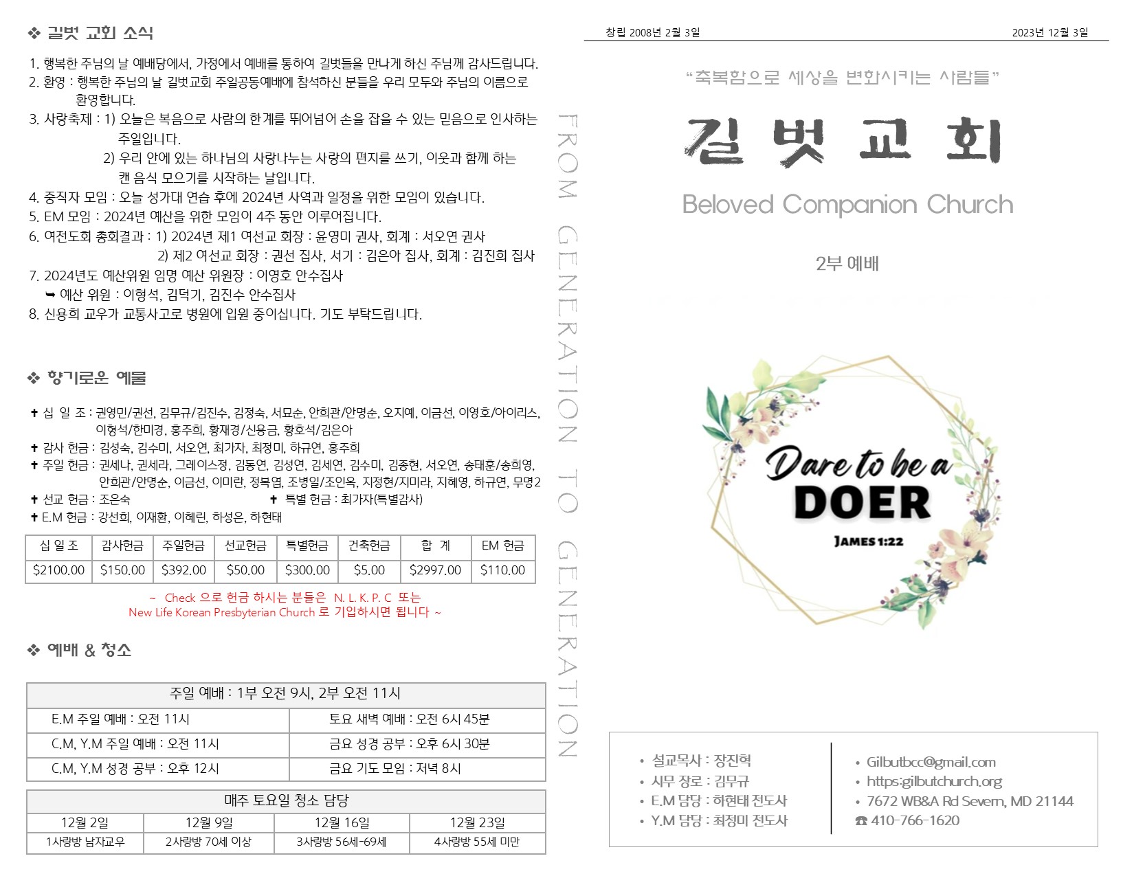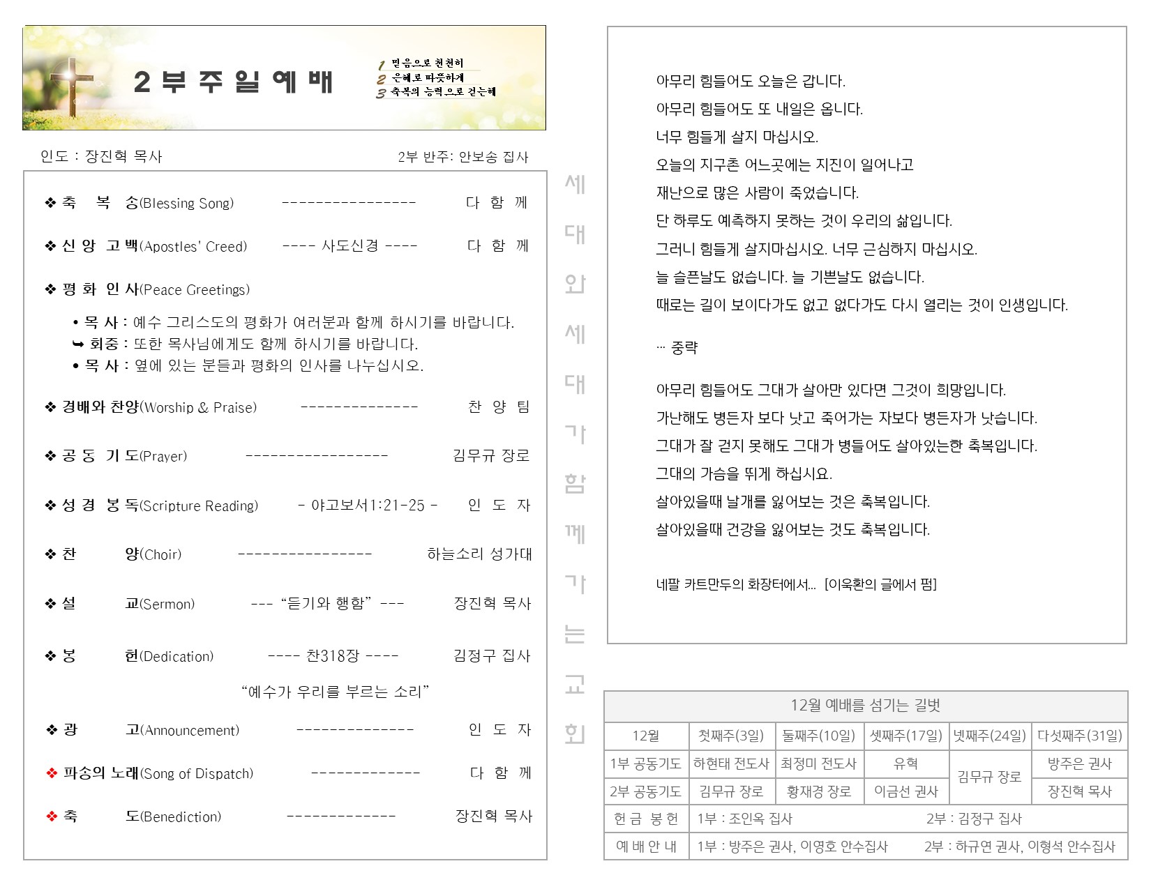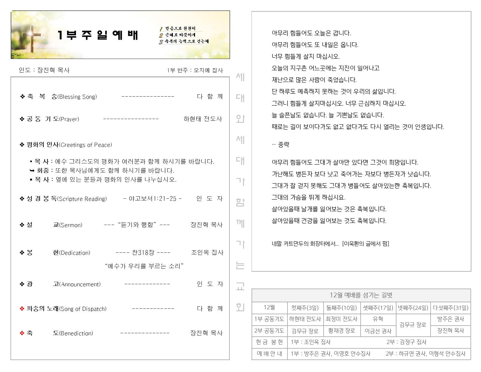 12월 3일 주일 예배 주보 Publish on December 05,2023 | 길벗교회 페이지 정보 작성자 길벗교회 댓글 0건 조회 2,103회 작성일 23-12-05 05:32 목록 본문 12월 3일 주일 예배 주보 이전글12월 10일 주일예배 주보 23.12.12 다음글11월 26일 주일 예배 주보 23.11.28 댓글 0 댓글목록 등록된 댓글이 없습니다. 목록
