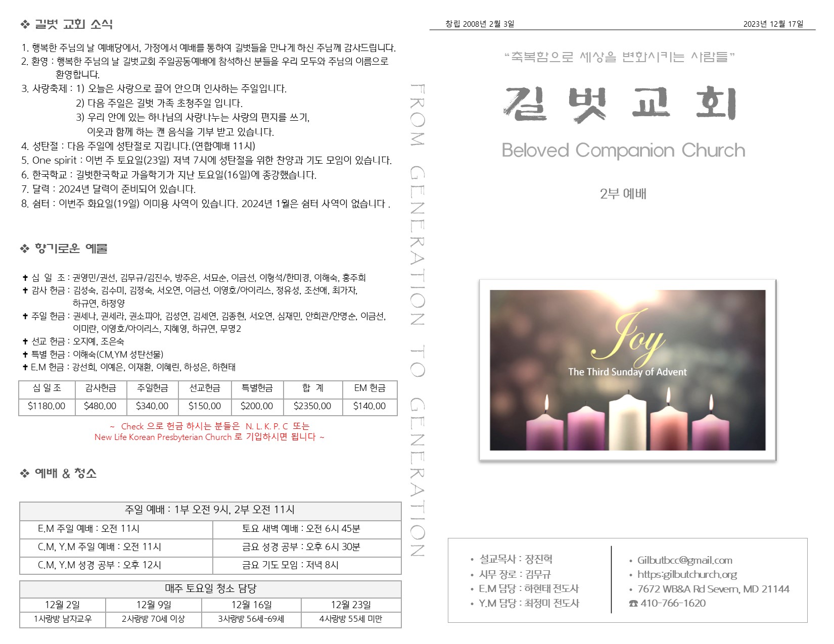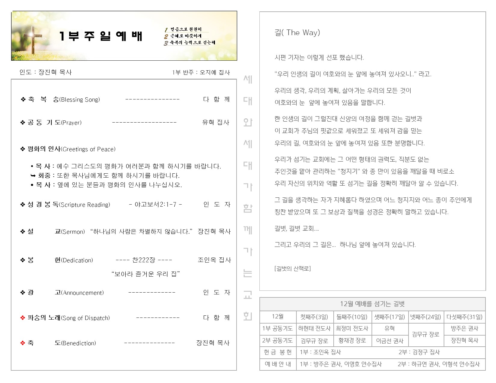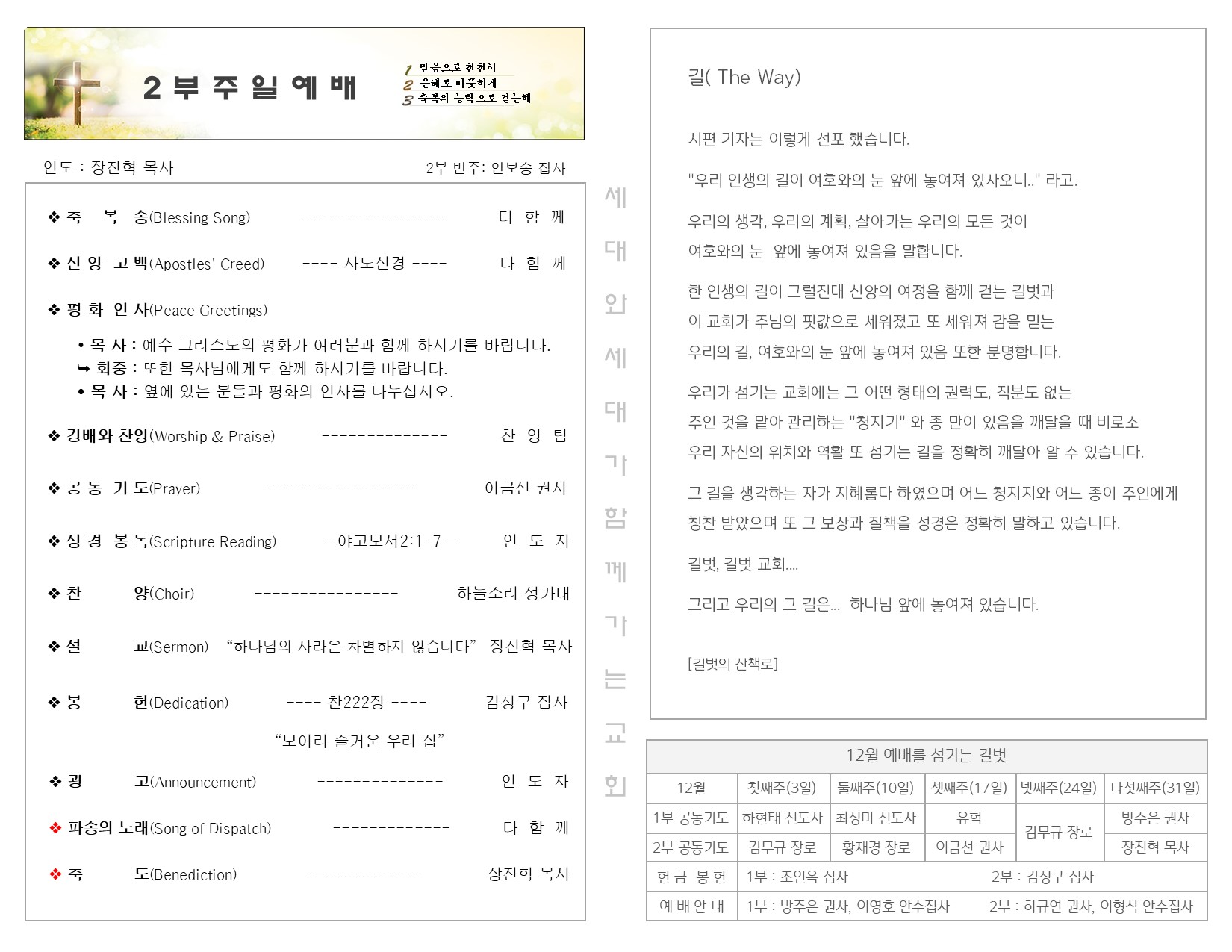 12월 17일 주일 예배 주보 Publish on December 20,2023 | 길벗교회 페이지 정보 작성자 길벗교회 댓글 0건 조회 2,323회 작성일 23-12-20 07:14 목록 본문 12월 17일 주일 예배 주보 이전글12월 24일 성탄 주일 예배 주보 23.12.26 다음글12월 10일 주일예배 주보 23.12.12 댓글 0 댓글목록 등록된 댓글이 없습니다. 목록