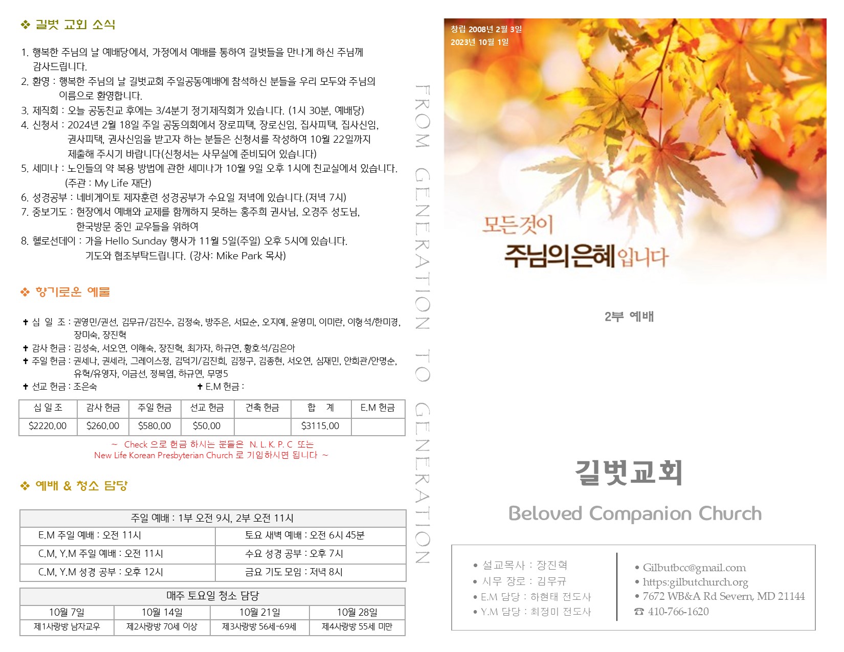 10월 1일 주일 예배 주보 Publish on October 03,2023 | 길벗교회 페이지 정보 작성자 길벗교회 댓글 0건 조회 1,613회 작성일 23-10-03 04:12 목록 본문 10월 1일 주일 예배 주보 이전글10월 8일 주일 예배 주보 23.10.10 다음글9월 24일 주일 예배 주보 23.09.26 댓글 0 댓글목록 등록된 댓글이 없습니다. 목록