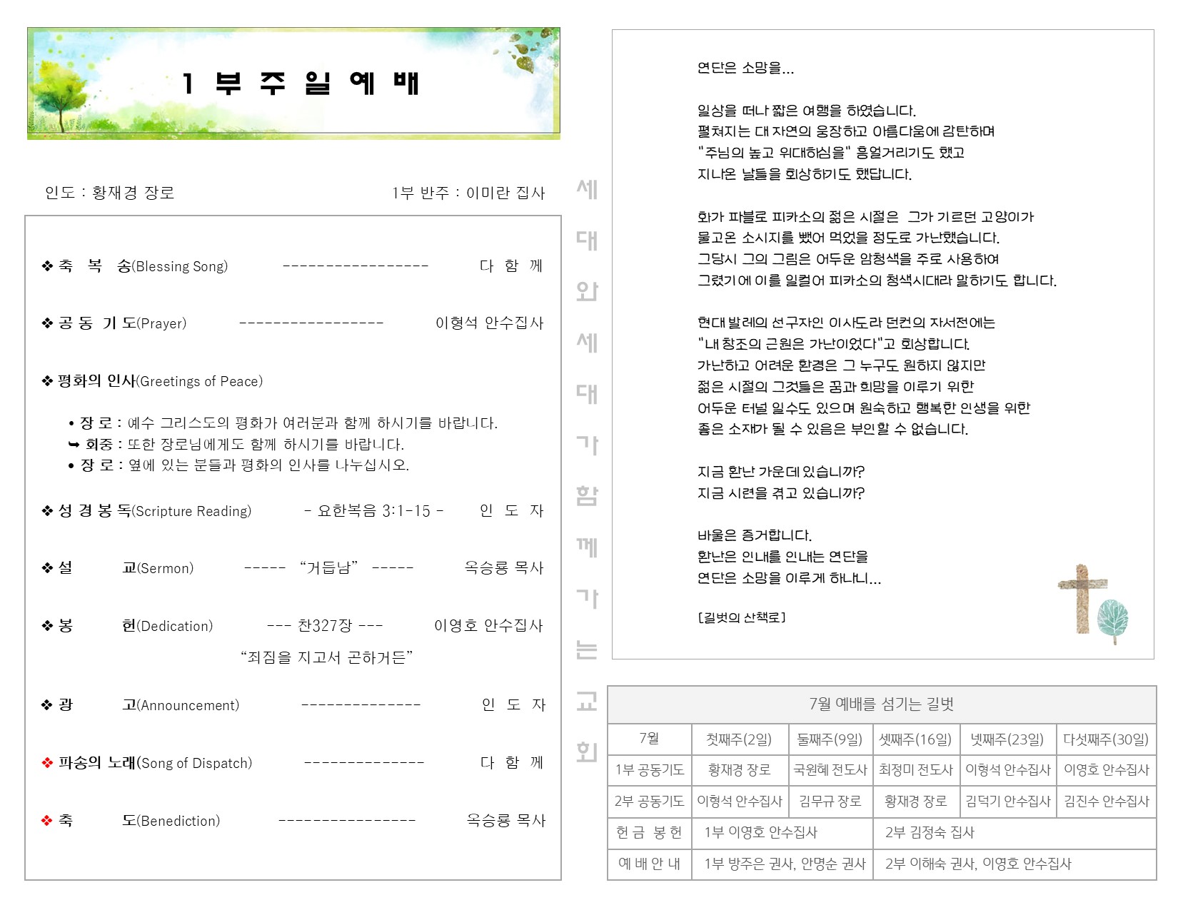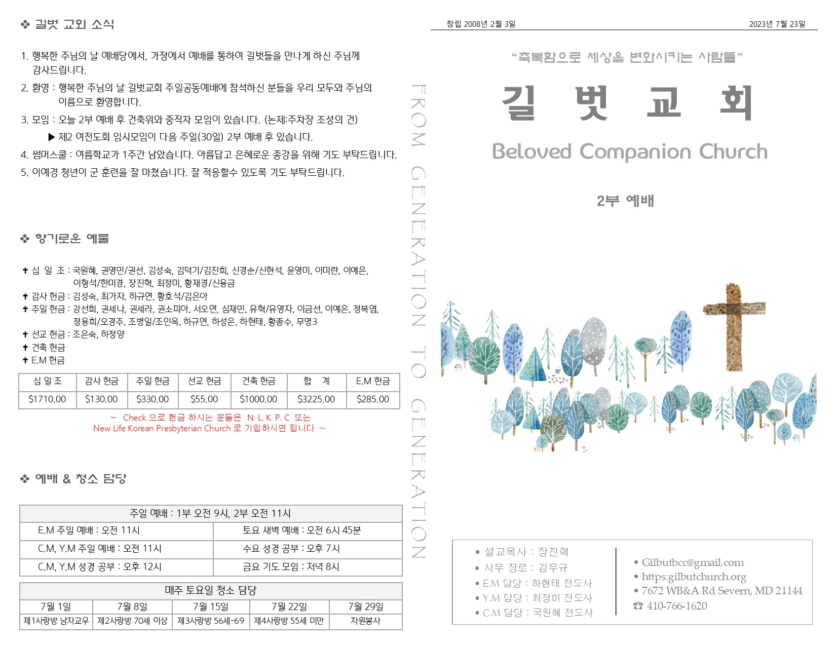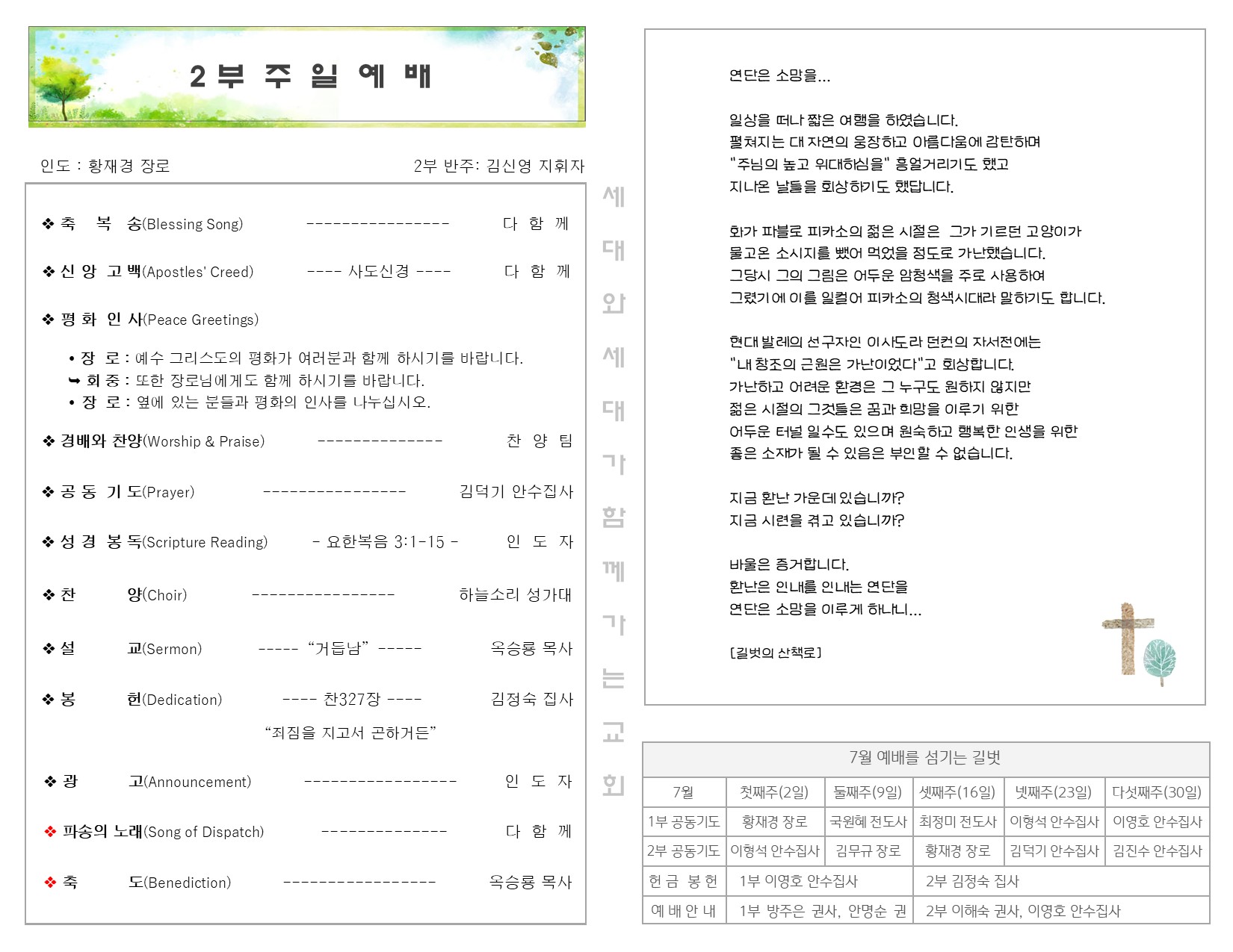 7월 23일 주일 예배 주보 Publish on July 25,2023 | 길벗교회 페이지 정보 작성자 길벗교회 댓글 0건 조회 1,877회 작성일 23-07-25 03:53 목록 본문 7월 23일 주일 예배 주보 이전글7월 30일 주일 예배 주보 23.08.01 다음글7월 16일 주일 예배 주보 23.07.19 댓글 0 댓글목록 등록된 댓글이 없습니다. 목록