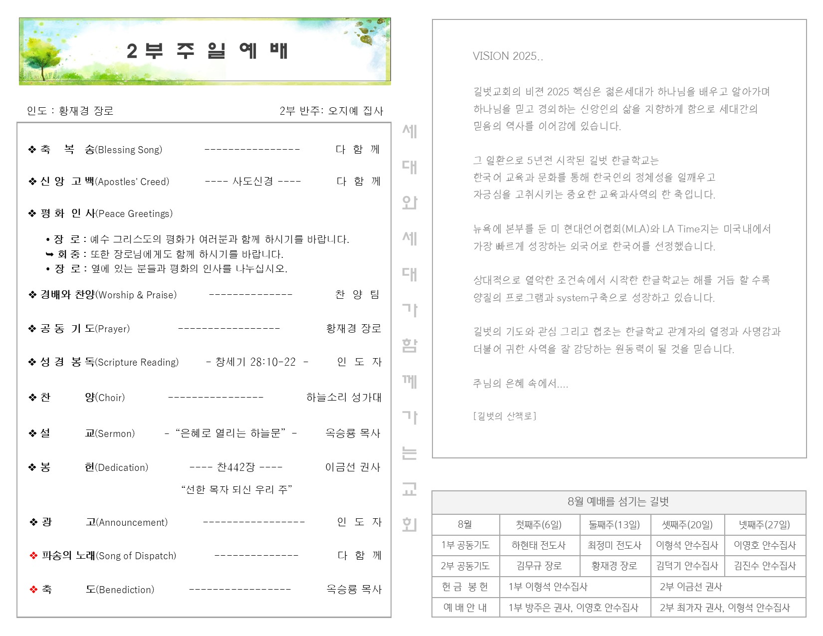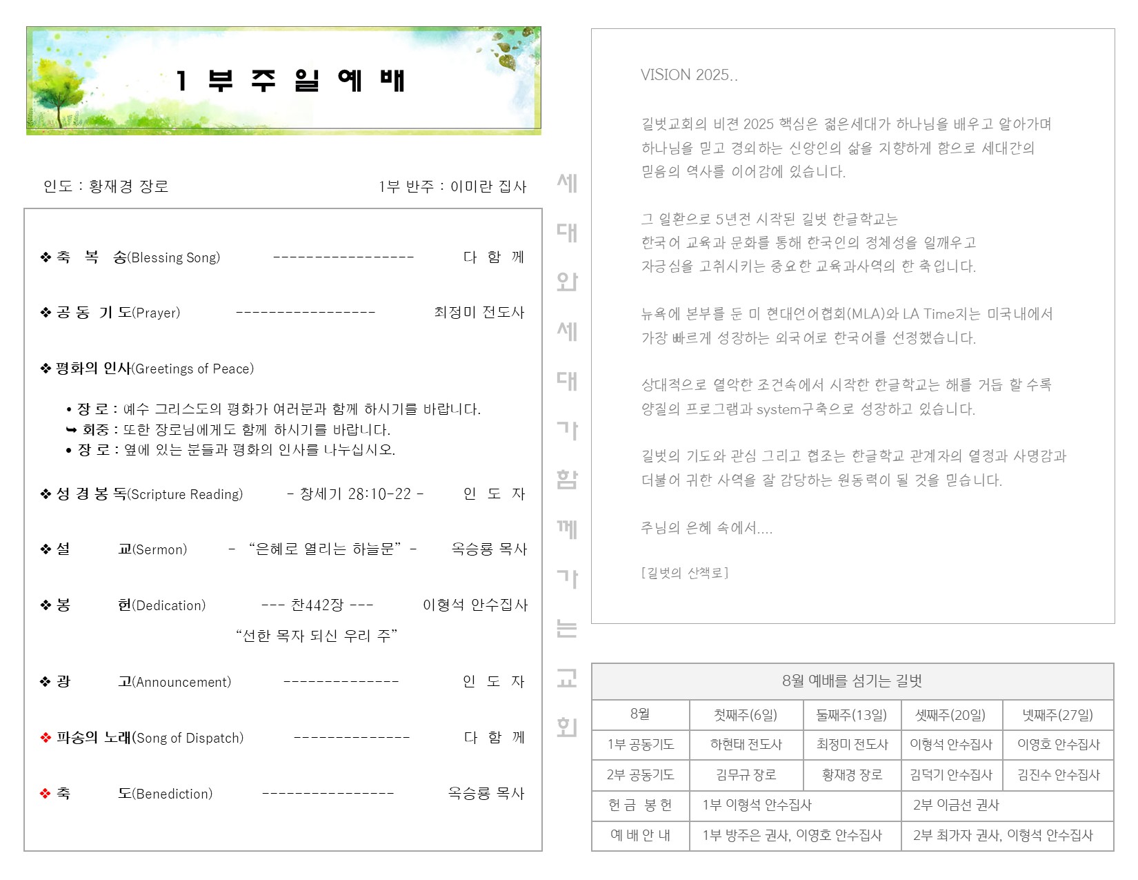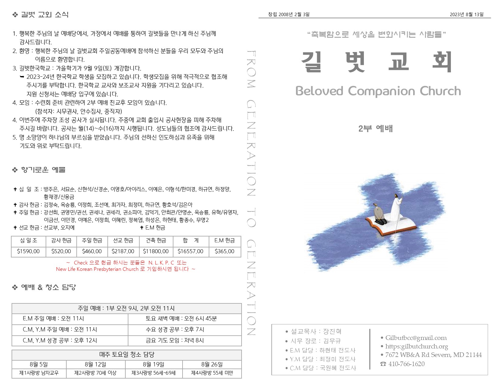 8월 13일 주일 예배 주보 Publish on August 15,2023 | 길벗교회 페이지 정보 작성자 길벗교회 댓글 0건 조회 1,714회 작성일 23-08-15 11:47 목록 본문 8월 13일 주일 예배 주보 이전글8월 20일 주일 예배 주보 23.08.22 다음글8월 6일 주일 예배 주보 23.08.08 댓글 0 댓글목록 등록된 댓글이 없습니다. 목록