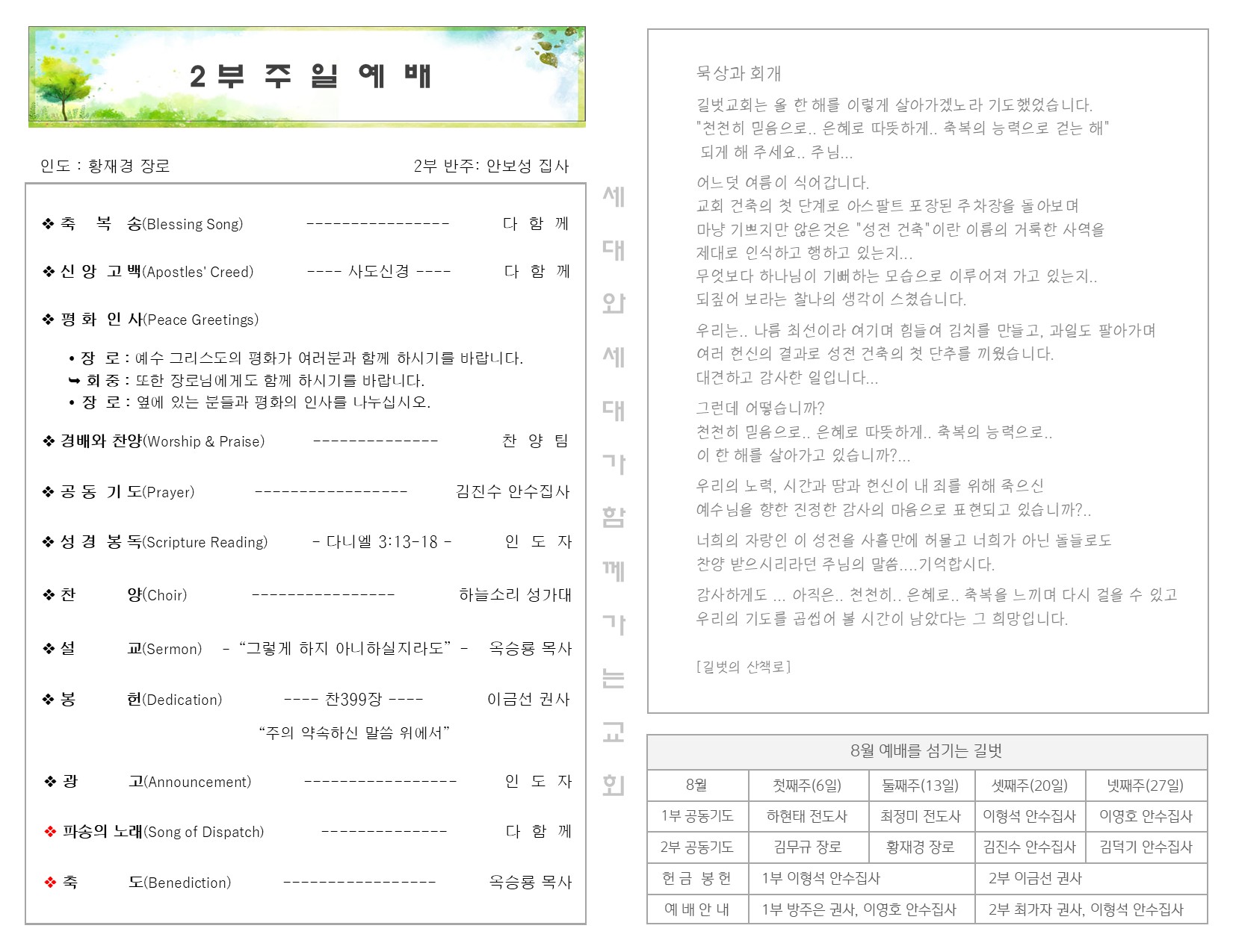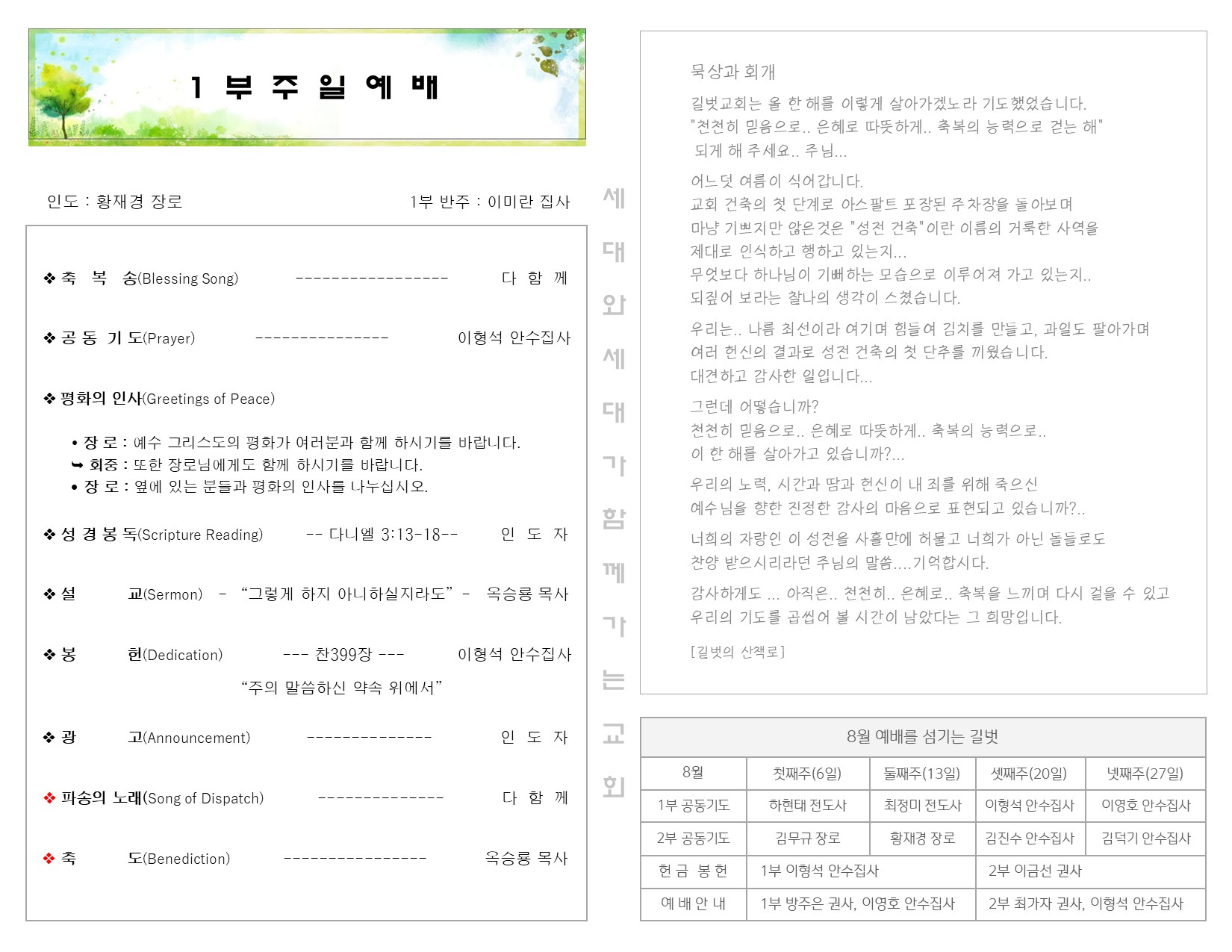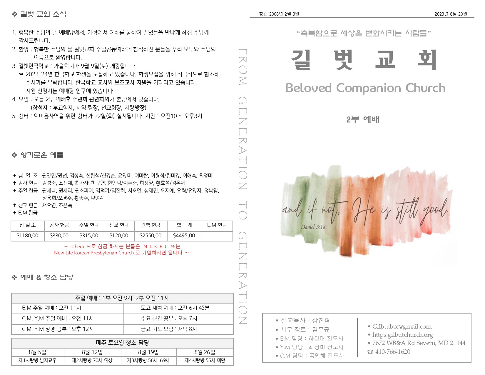 8월 20일 주일 예배 주보 Publish on August 22,2023 | 길벗교회 페이지 정보 작성자 길벗교회 댓글 0건 조회 1,650회 작성일 23-08-22 04:58 목록 본문 8월 20일 주일 예배 주보 이전글8월 27일 주일 예배 주보 23.08.29 다음글8월 13일 주일 예배 주보 23.08.15 댓글 0 댓글목록 등록된 댓글이 없습니다. 목록