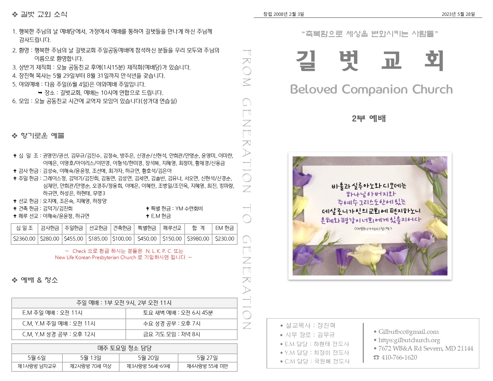 5월 28일 주일 예배 주보 Publish on May 30,2023 | 길벗교회 페이지 정보 작성자 길벗교회 댓글 0건 조회 2,083회 작성일 23-05-30 03:47 목록 본문 5월 28일 주일 예배 주보 이전글6월 4일 주일 예배 주보 23.06.12 다음글5월 21일 주일 예배 주보 23.05.23 댓글 0 댓글목록 등록된 댓글이 없습니다. 목록