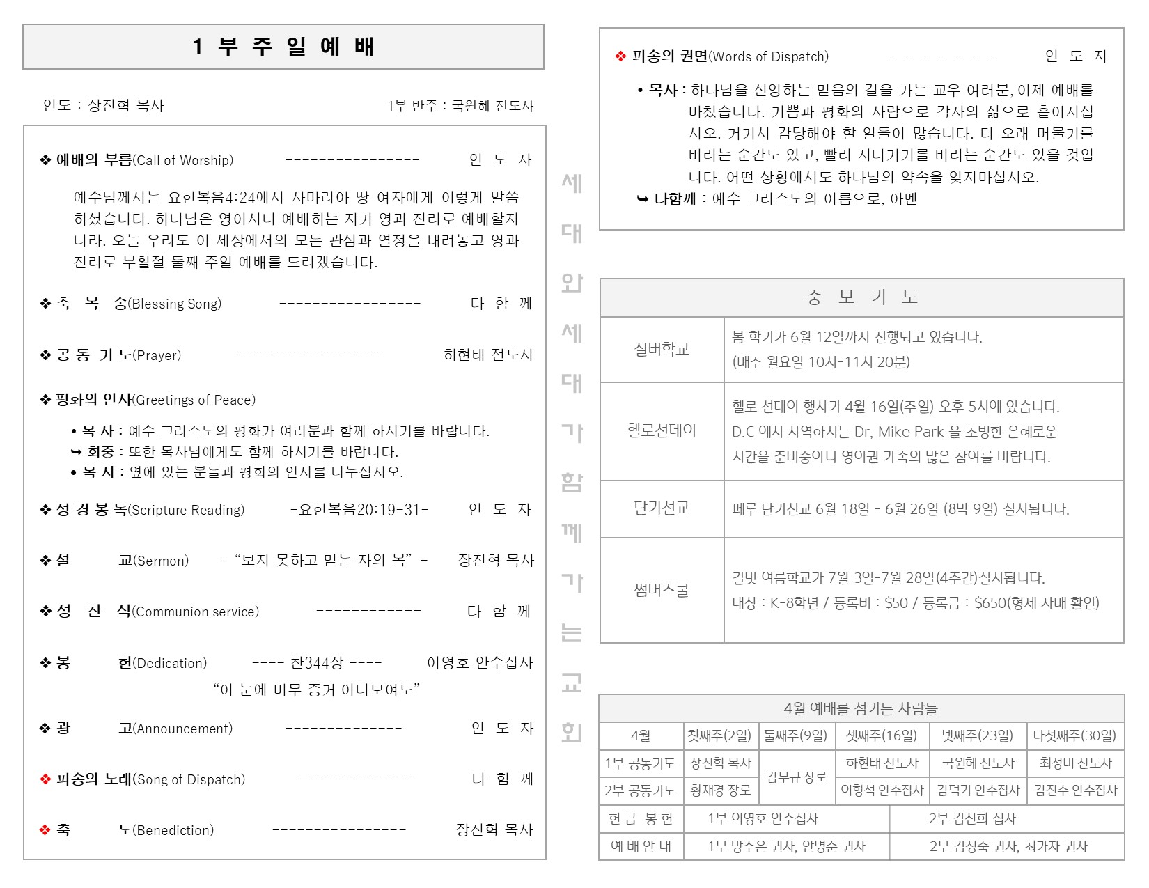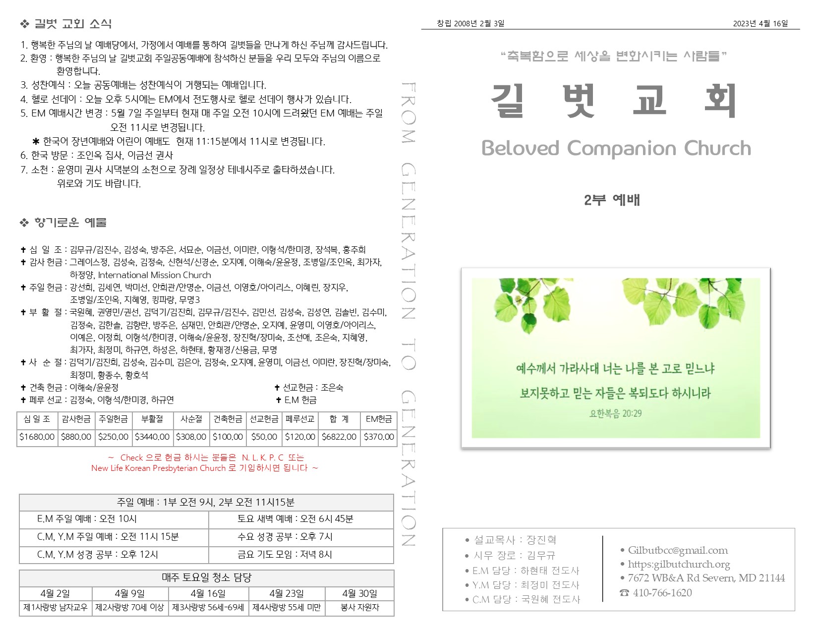 4월 16일 주일 예배 주보 Publish on April 17,2023 | 길벗교회 페이지 정보 작성자 길벗교회 댓글 0건 조회 2,229회 작성일 23-04-17 05:19 목록 본문 4월 16일 주일 예배 주보 이전글4월 23일 주일 예배 주보 23.04.25 다음글2023년 4월 9일 부활주일 예배 23.04.10 댓글 0 댓글목록 등록된 댓글이 없습니다. 목록