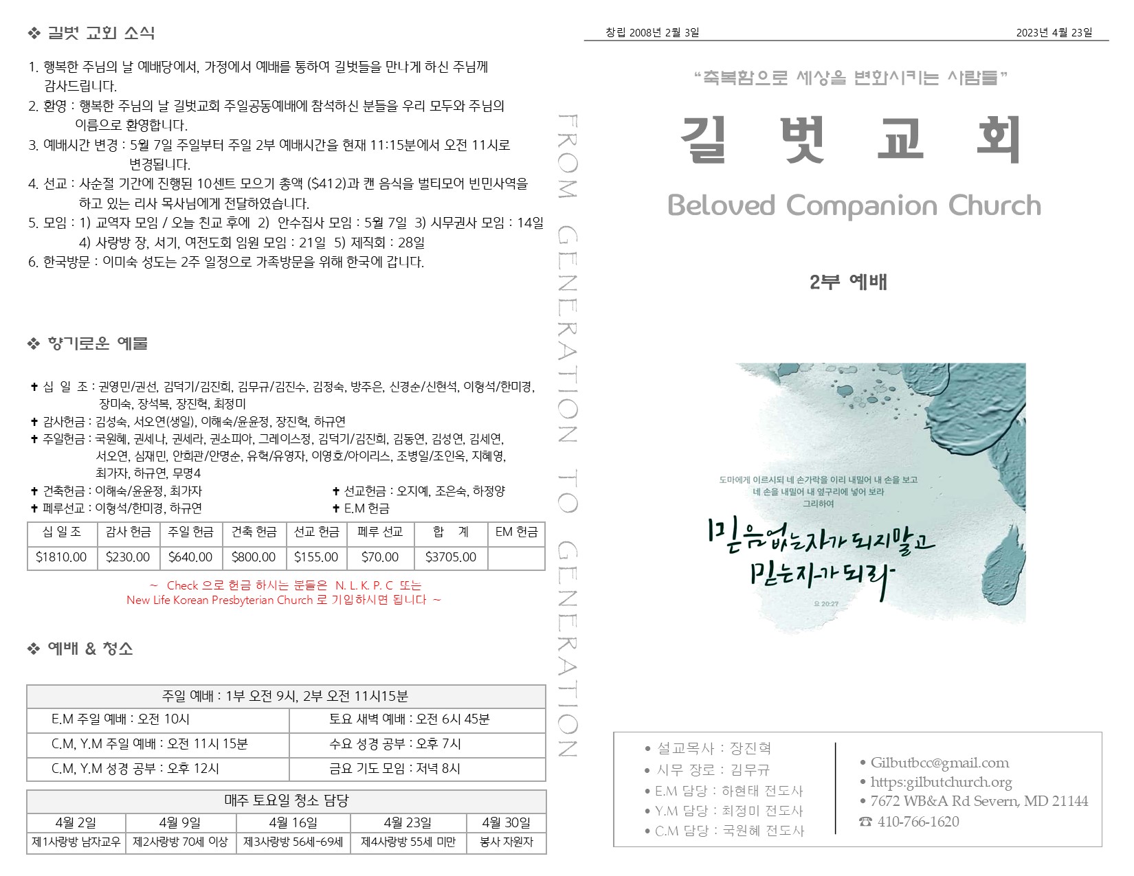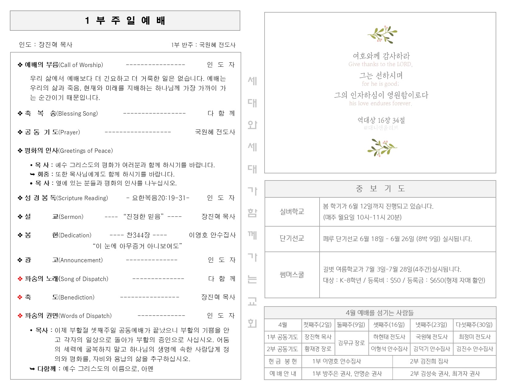4월 23일 주일 예배 주보 Publish on April 25,2023 | 길벗교회 페이지 정보 작성자 길벗교회 댓글 0건 조회 1,951회 작성일 23-04-25 03:55 목록 본문 4월 23일 주일 예배 주보 이전글4월 30일 주일 예배 주보 23.05.02 다음글4월 16일 주일 예배 주보 23.04.17 댓글 0 댓글목록 등록된 댓글이 없습니다. 목록