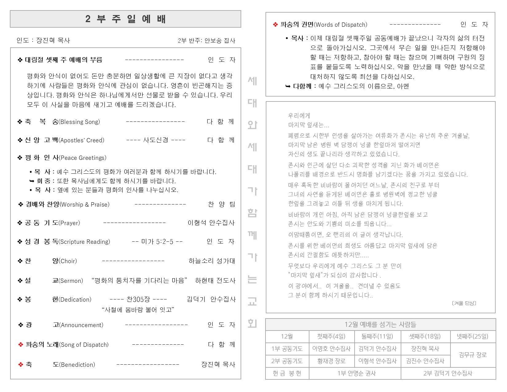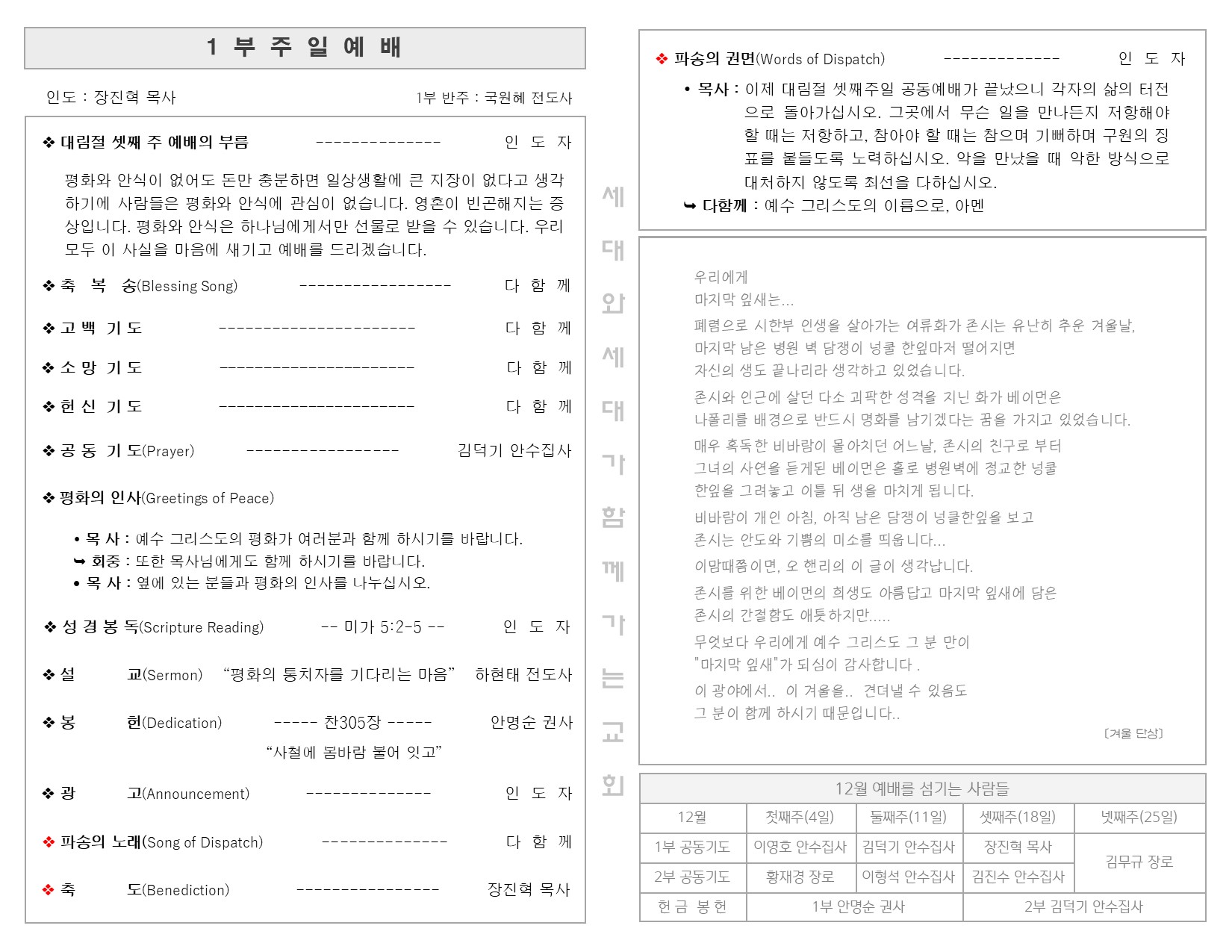 12월 11일 주일예배 주보 Publish on December 13,2022 | 길벗교회 페이지 정보 작성자 길벗교회 댓글 0건 조회 2,434회 작성일 22-12-13 05:59 목록 본문 12월 11일 주일예배 주보 이전글12월 18일 주일예배 주보 22.12.22 다음글12월 4일 주일예배 주보 22.12.06 댓글 0 댓글목록 등록된 댓글이 없습니다. 목록