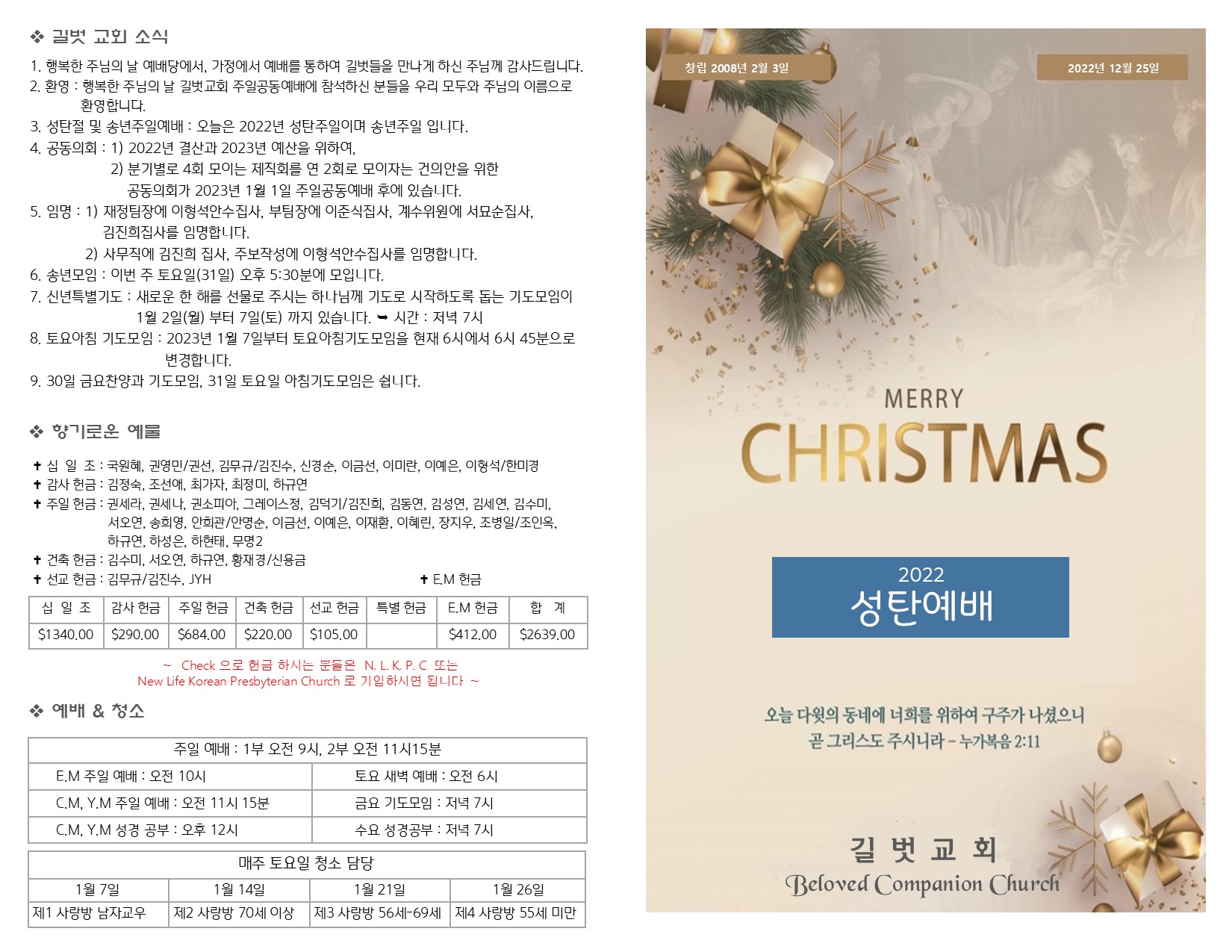 12월 25일 성탄절 주일예배 Publish on December 27,2022 | 길벗교회 페이지 정보 작성자 길벗교회 댓글 0건 조회 2,648회 작성일 22-12-27 06:18 목록 본문 12월 25일 성탄절 주일예배 이전글1월 1일 2023년 주일 예배 주보 23.01.06 다음글12월 18일 주일예배 주보 22.12.22 댓글 0 댓글목록 등록된 댓글이 없습니다. 목록