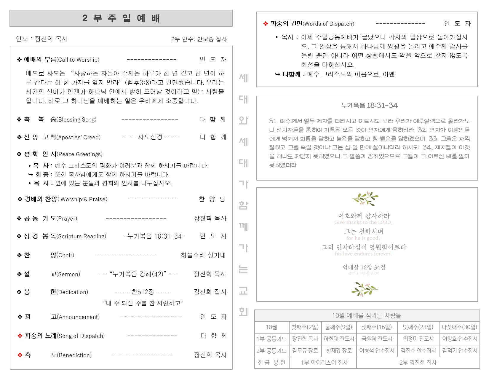 10월 9일 주일예배 주보 Publish on October 11,2022 | 길벗교회 페이지 정보 작성자 길벗교회 댓글 0건 조회 1,893회 작성일 22-10-11 06:08 목록 본문 10월 9일 주일예배 주보 이전글10월 16일 주일예배 주보 22.10.19 다음글10월 2일 주일예배 주보 22.10.04 댓글 0 댓글목록 등록된 댓글이 없습니다. 목록