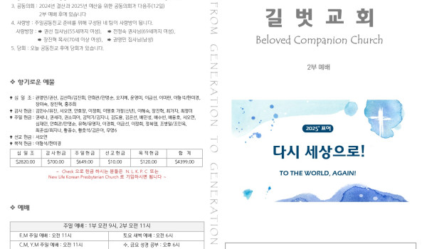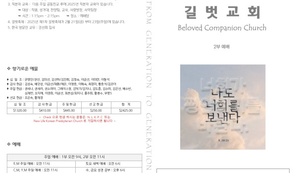 2025년 1월 5일 주일 예배 주보