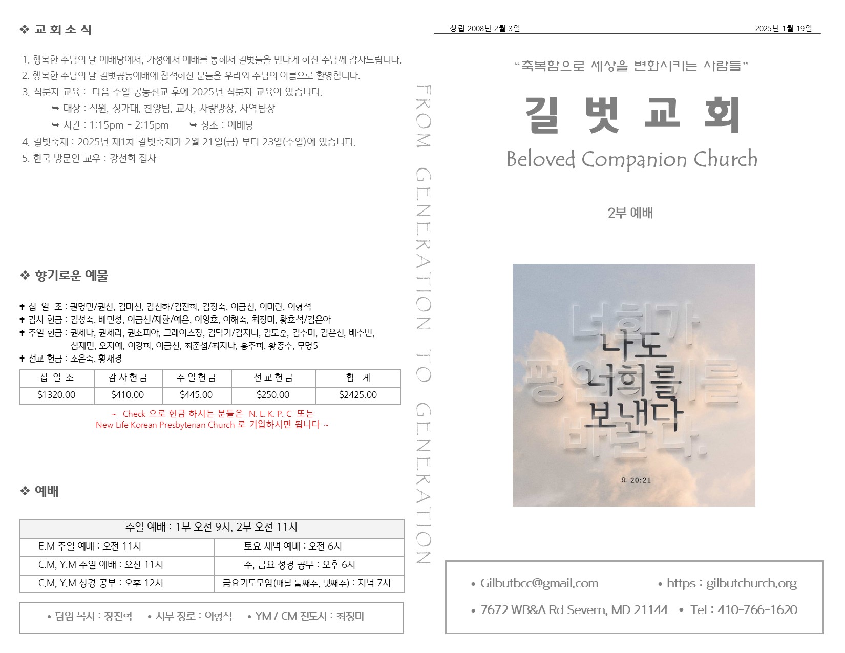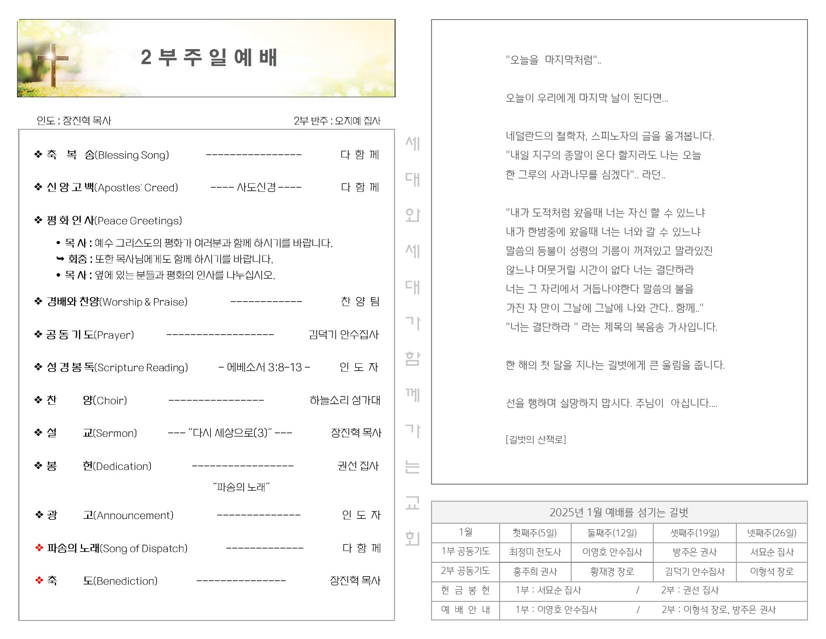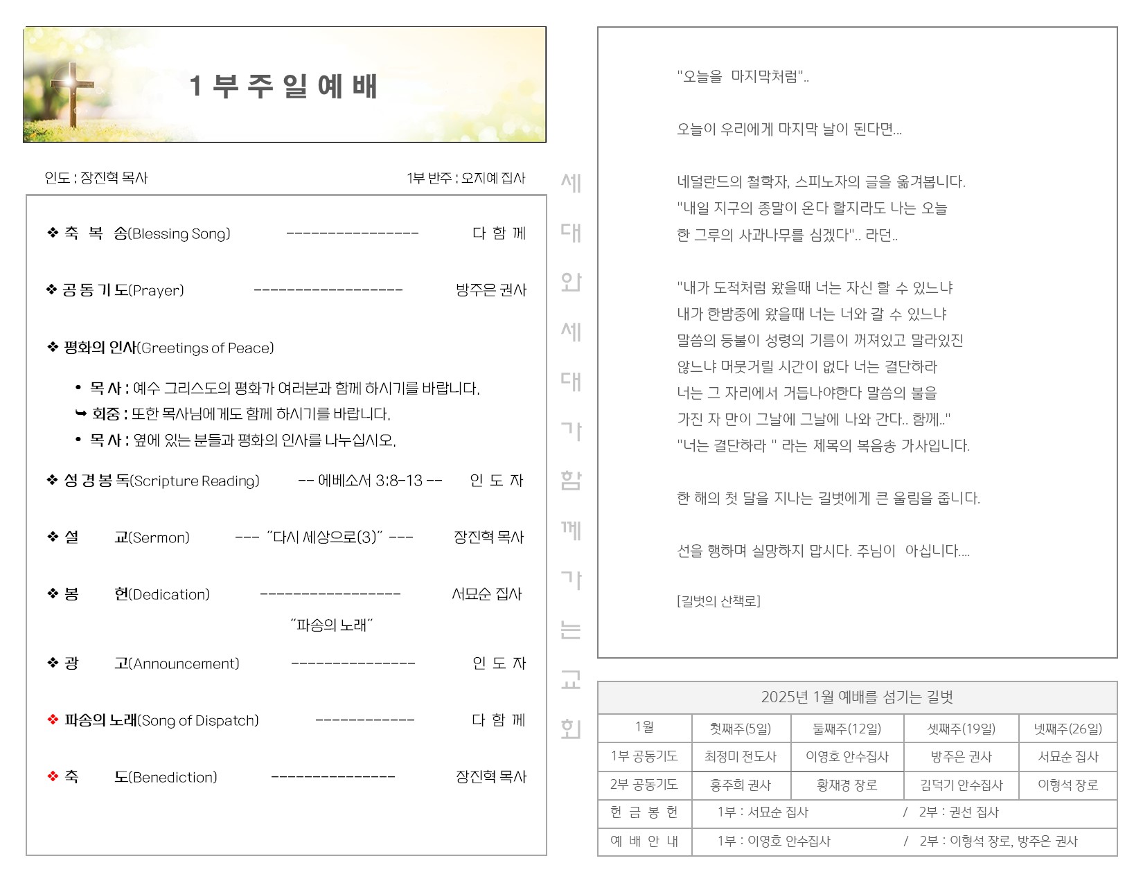 1월 19일 주일 예배 주보 Publish on January 22,2025 | 길벗교회 페이지 정보 작성자 길벗교회 댓글 0건 조회 960회 작성일 25-01-22 07:34 목록 본문 1월 19일 주일 예배 주보 이전글1월 26일 주일 예배 주보 25.01.28 다음글1월 12일 주일 예배 주보 25.01.15 댓글 0 댓글목록 등록된 댓글이 없습니다. 목록