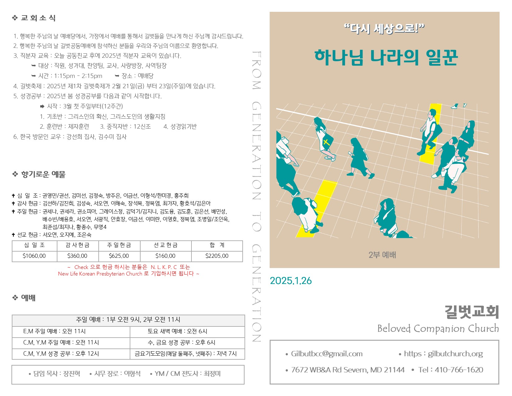 1월 26일 주일 예배 주보 Publish on January 28,2025 | 길벗교회 페이지 정보 작성자 길벗교회 댓글 0건 조회 1,500회 작성일 25-01-28 04:52 목록 본문 1월 26일 주일 예배 주보 이전글2월 2일 주일 예배 주보 25.02.05 다음글1월 19일 주일 예배 주보 25.01.22 댓글 0 댓글목록 등록된 댓글이 없습니다. 목록