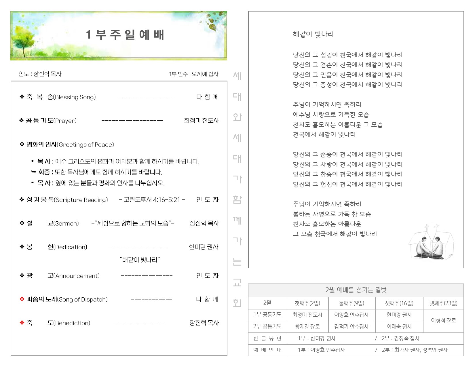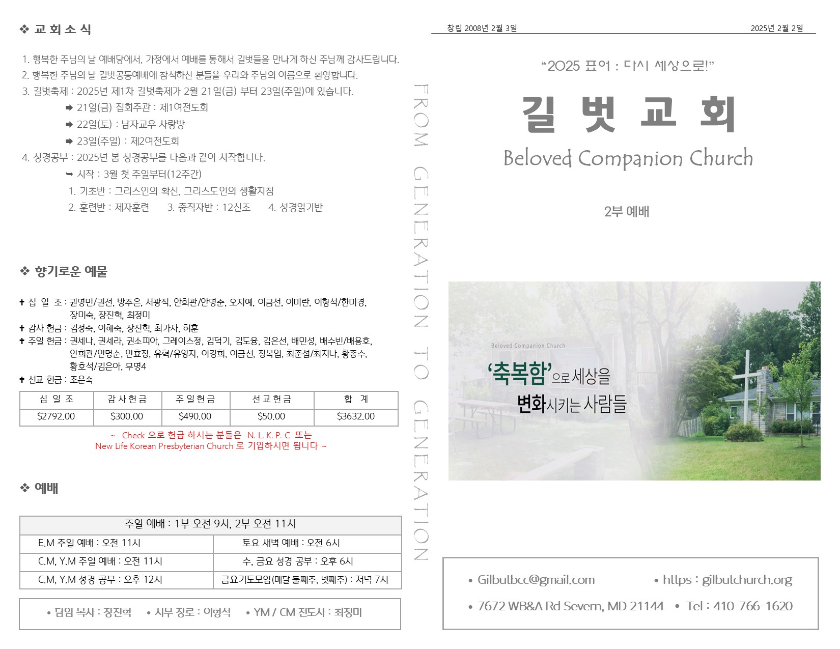 2월 2일 주일 예배 주보 Publish on February 05,2025 | 길벗교회 페이지 정보 작성자 길벗교회 댓글 0건 조회 955회 작성일 25-02-05 04:29 목록 본문 2월 2일 주일 예배 주보 이전글2월 9일 주일 예배 주보 25.02.12 다음글1월 26일 주일 예배 주보 25.01.28 댓글 0 댓글목록 등록된 댓글이 없습니다. 목록