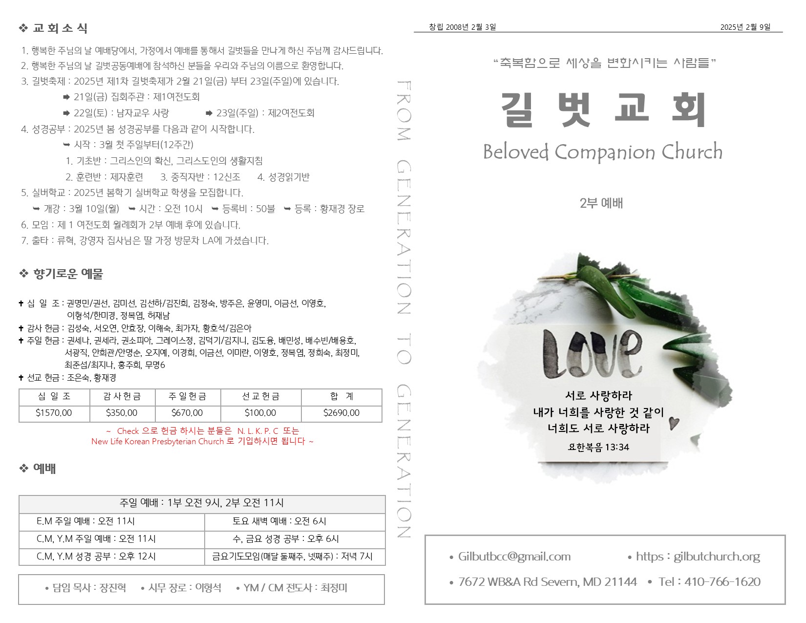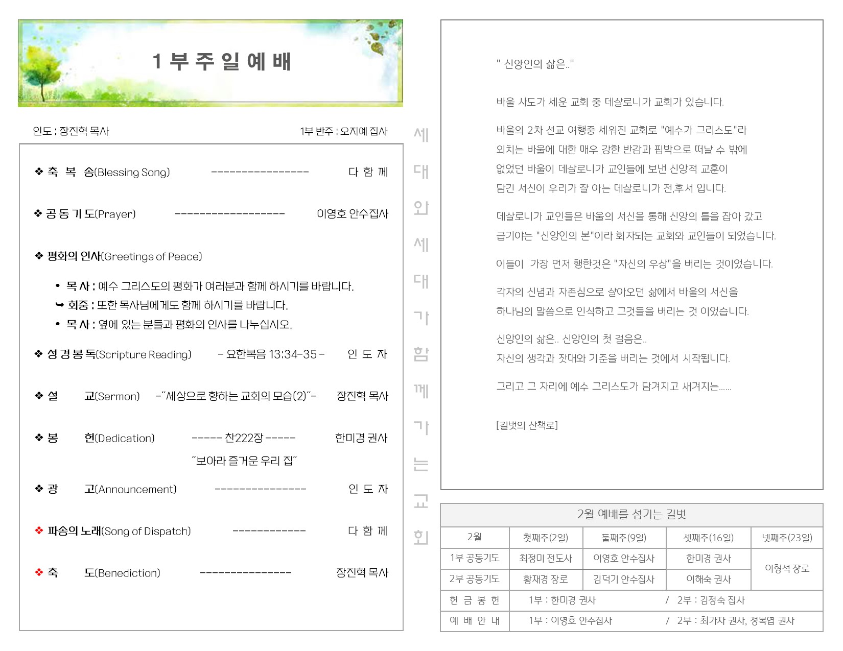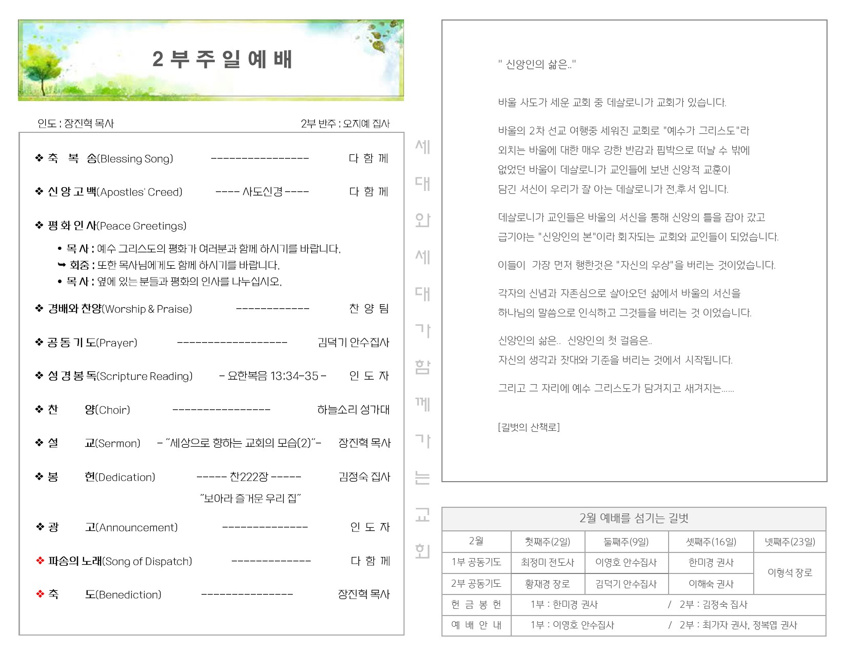 2월 9일 주일 예배 주보 Publish on February 12,2025 | 길벗교회 페이지 정보 작성자 길벗교회 댓글 0건 조회 998회 작성일 25-02-12 04:25 목록 본문 2월 9일 주일 예배 주보 이전글2월 16일 주일 예배 주보 25.02.19 다음글2월 2일 주일 예배 주보 25.02.05 댓글 0 댓글목록 등록된 댓글이 없습니다. 목록