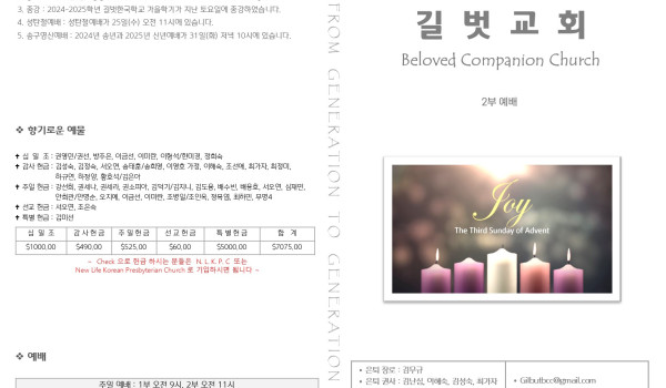 12월 15일 주일 예배 주보