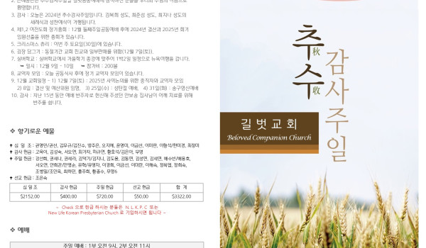 11월 24일 추수감사주일 예배