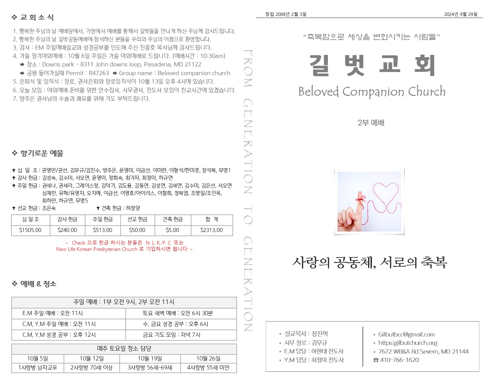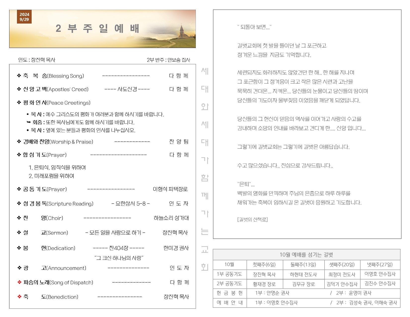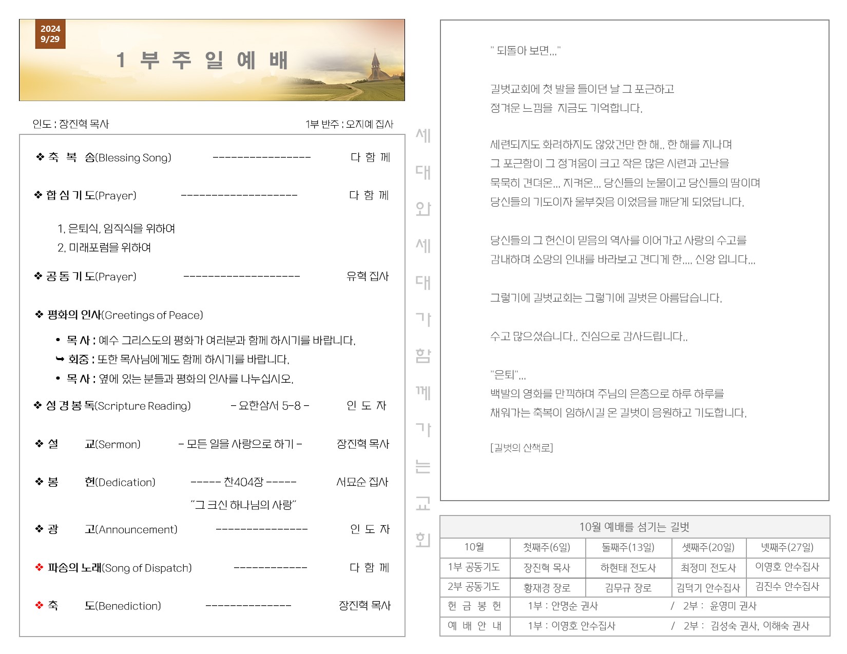 9월 29일 주일 예배 주보 Publish on September 30,2024 | 길벗교회 페이지 정보 작성자 길벗교회 댓글 0건 조회 1,218회 작성일 24-09-30 06:58 목록 본문 9월 29일 주일 예배 주보 이전글10월 6일 주일 예배 주보 24.10.09 다음글9월 22일 주일 예배 주보 24.09.24 댓글 0 댓글목록 등록된 댓글이 없습니다. 목록