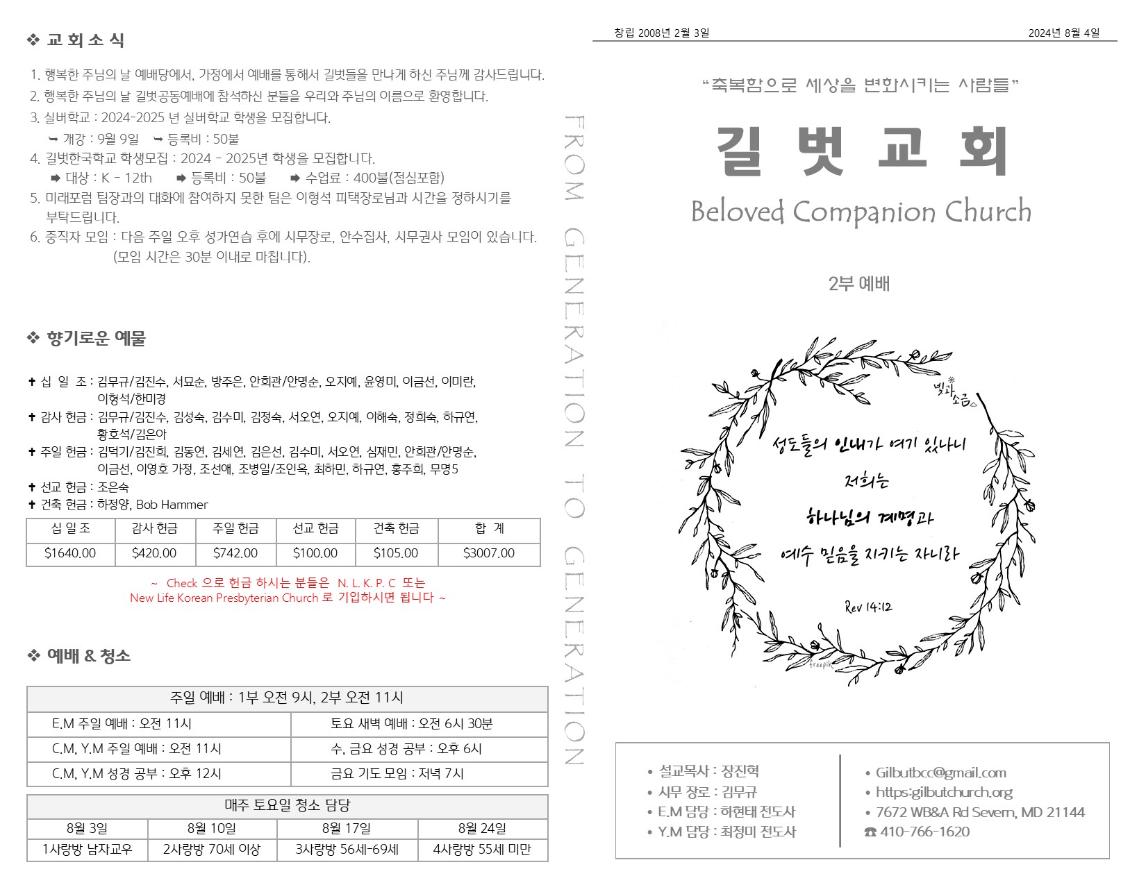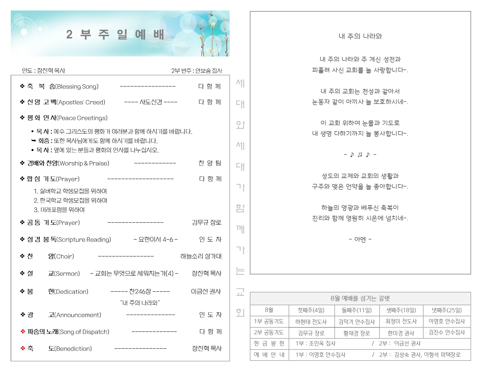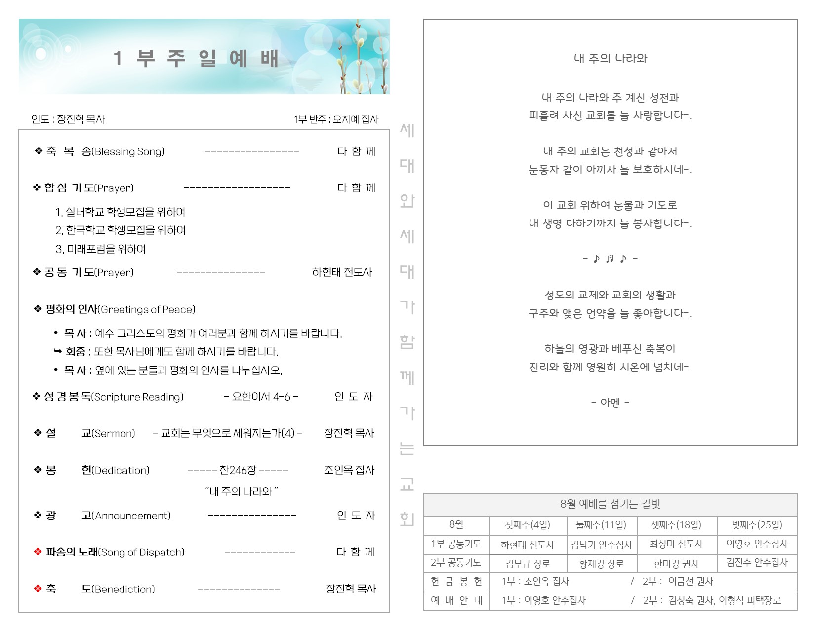 8월 4일 주일 예배 주보 Publish on August 06,2024 | 길벗교회 페이지 정보 작성자 길벗교회 댓글 0건 조회 1,124회 작성일 24-08-06 16:36 목록 본문 8월 4일 주일 예배 주보 이전글8월 11일 주일 예배 주보 24.08.13 다음글7월 28일 주일 예배 주보 24.07.30 댓글 0 댓글목록 등록된 댓글이 없습니다. 목록