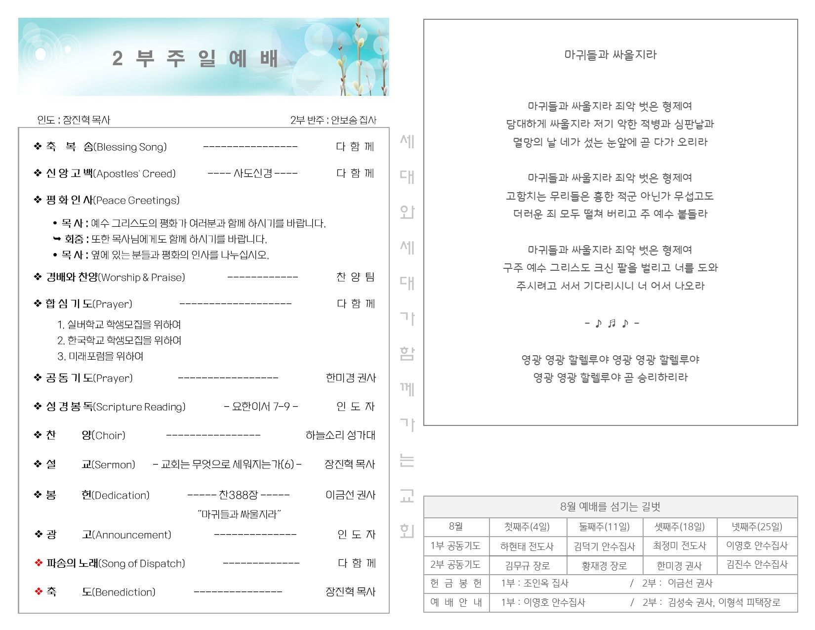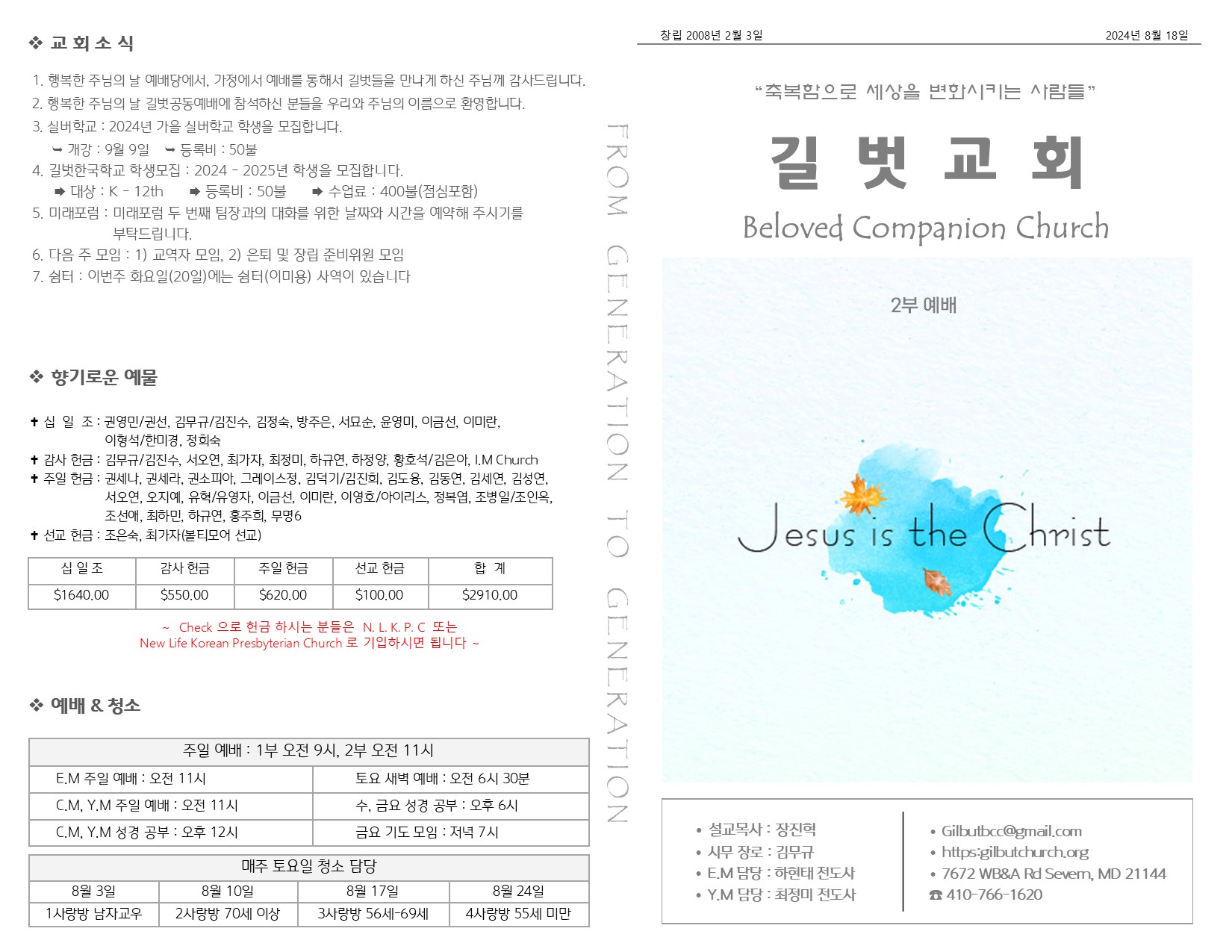 8월 18일 주일 예배 주보 Publish on August 21,2024 | 길벗교회 페이지 정보 작성자 길벗교회 댓글 0건 조회 1,267회 작성일 24-08-21 04:34 목록 본문 8월 18일 주일 예배 주보 이전글8월 25일 주일 예배 주보 24.08.27 다음글8월 11일 주일 예배 주보 24.08.13 댓글 0 댓글목록 등록된 댓글이 없습니다. 목록