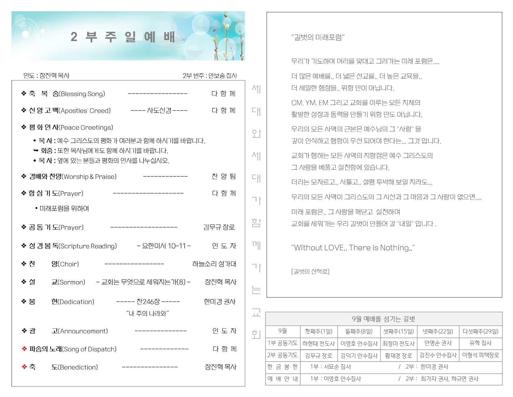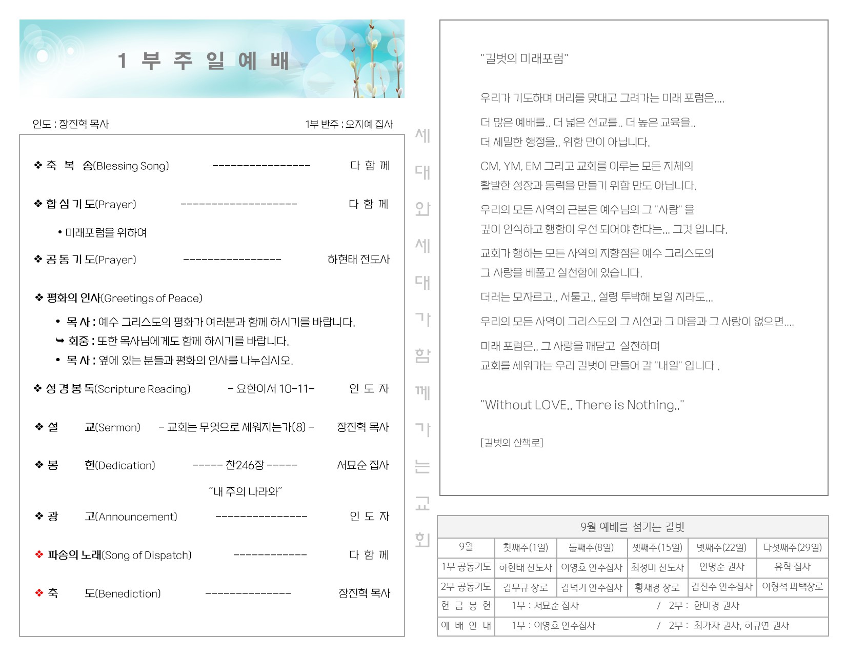 9월 1일 주일 예배 주보 Publish on September 03,2024 | 길벗교회 페이지 정보 작성자 길벗교회 댓글 0건 조회 1,217회 작성일 24-09-03 03:44 목록 본문 9월 1일 주일예배 주보 이전글9월 8일 주일 예배 주보 24.09.10 다음글8월 25일 주일 예배 주보 24.08.27 댓글 0 댓글목록 등록된 댓글이 없습니다. 목록