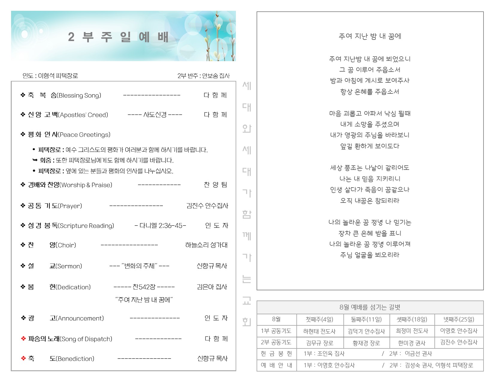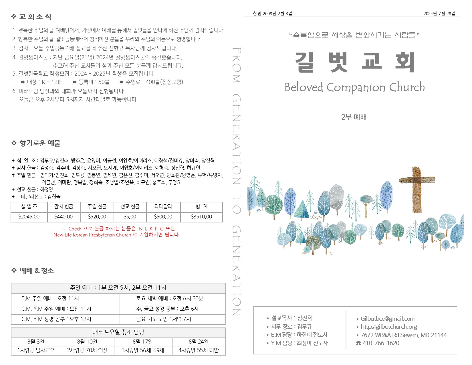 7월 28일 주일 예배 주보 Publish on July 30,2024 | 길벗교회 페이지 정보 작성자 길벗교회 댓글 0건 조회 1,558회 작성일 24-07-30 04:15 목록 본문 7월 28일 주일 예배 주보 이전글8월 4일 주일 예배 주보 24.08.06 다음글7월 21일 주일 예배 주보 24.07.23 댓글 0 댓글목록 등록된 댓글이 없습니다. 목록