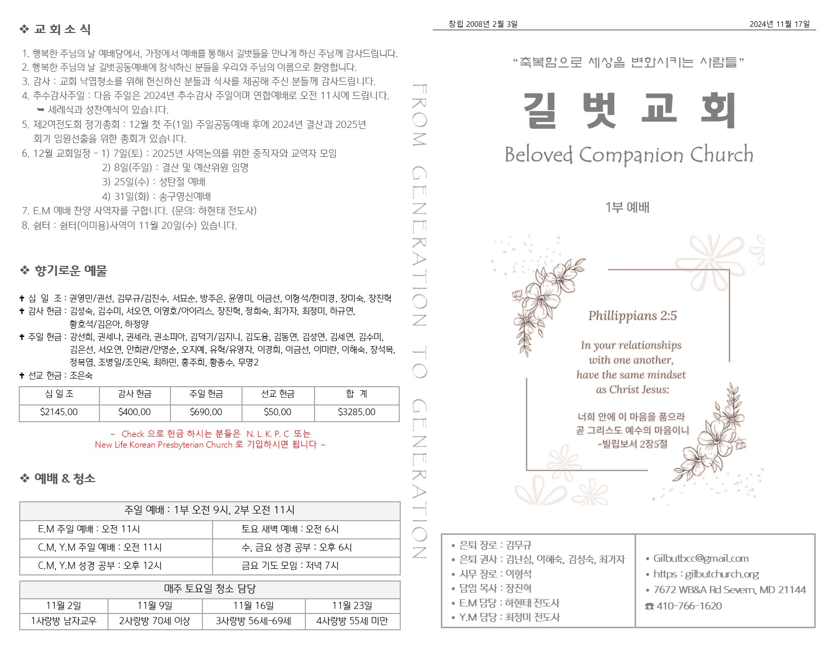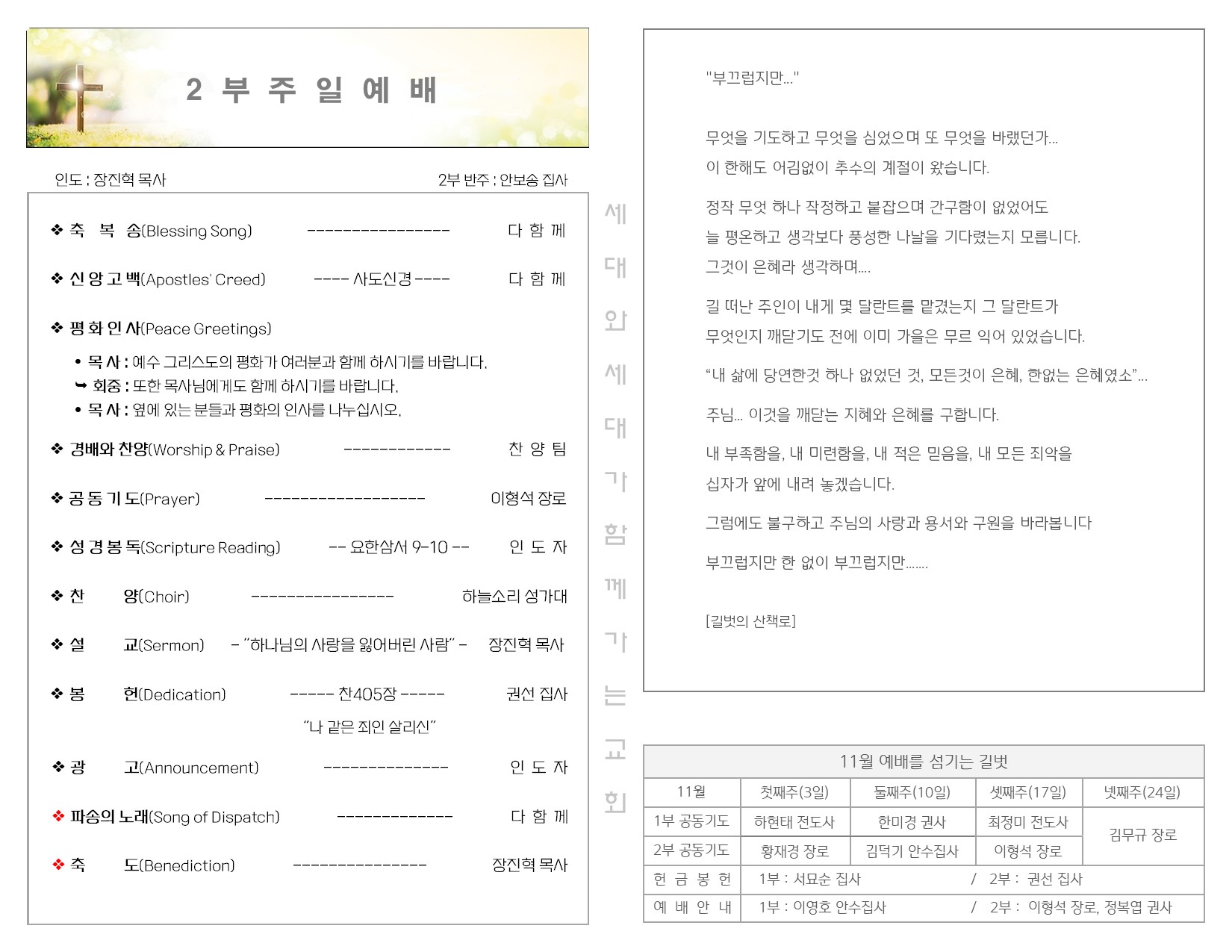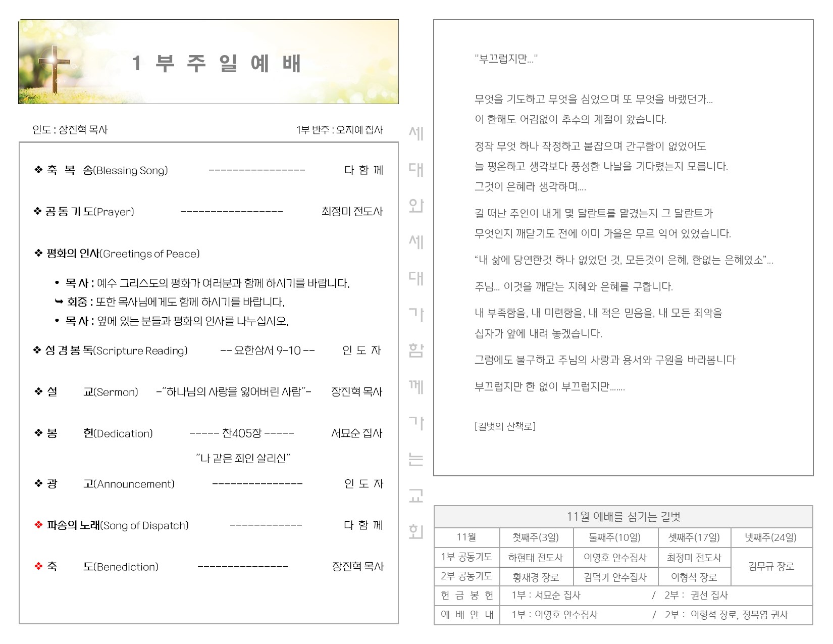 11월 17일 주일 예배 주보 Publish on November 19,2024 | 길벗교회 페이지 정보 작성자 길벗교회 댓글 0건 조회 1,339회 작성일 24-11-19 05:45 목록 본문 11월 17일 주일 예배 주보 이전글11월 24일 추수감사주일 예배 24.11.26 다음글11월 10일 주일 예배 주보 24.11.12 댓글 0 댓글목록 등록된 댓글이 없습니다. 목록