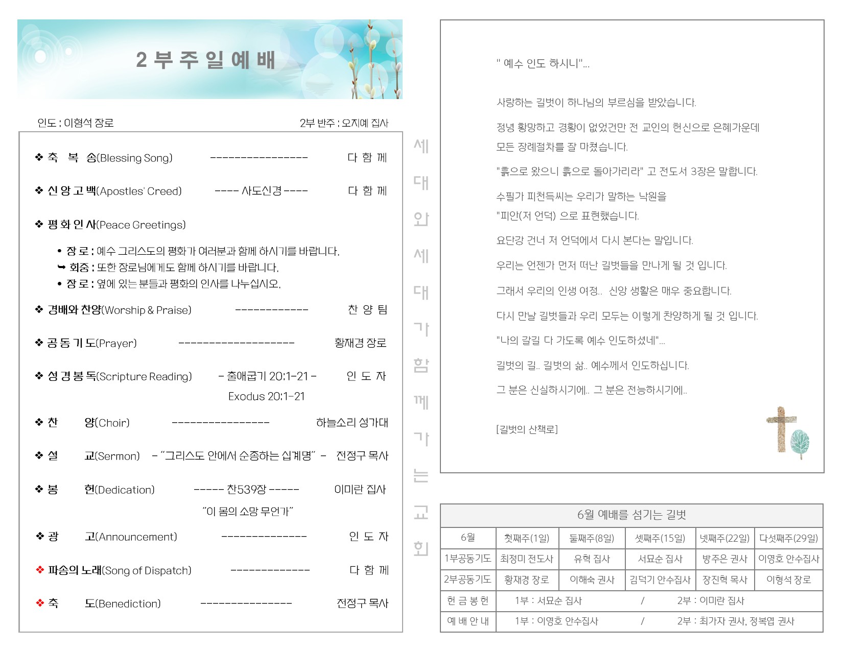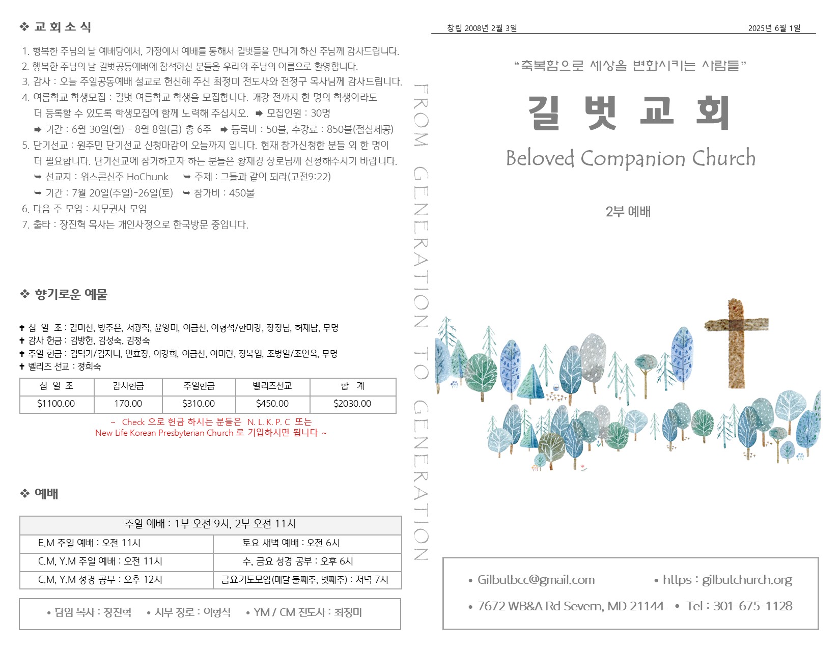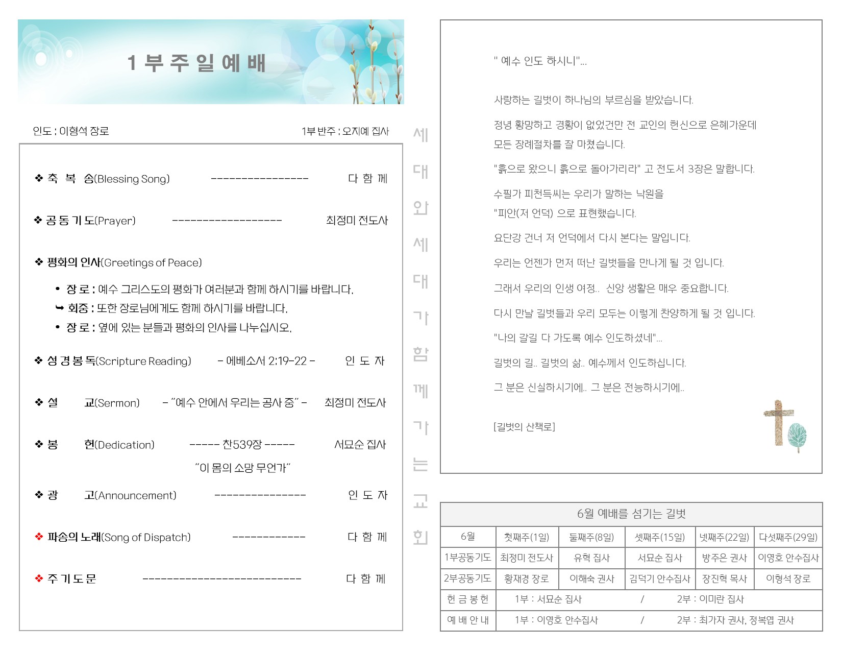 6월 1일 주일 예배 주보 Publish on June 04,2025 | 길벗교회 페이지 정보 작성자 길벗교회 댓글 0건 조회 954회 작성일 25-06-04 09:07 목록 본문 6월 1일 주일 예배 주보 이전글6월 8일 주일 예배 주보 25.06.10 다음글5월 25일 주일 예배 주보 25.05.28 댓글 0 댓글목록 등록된 댓글이 없습니다. 목록