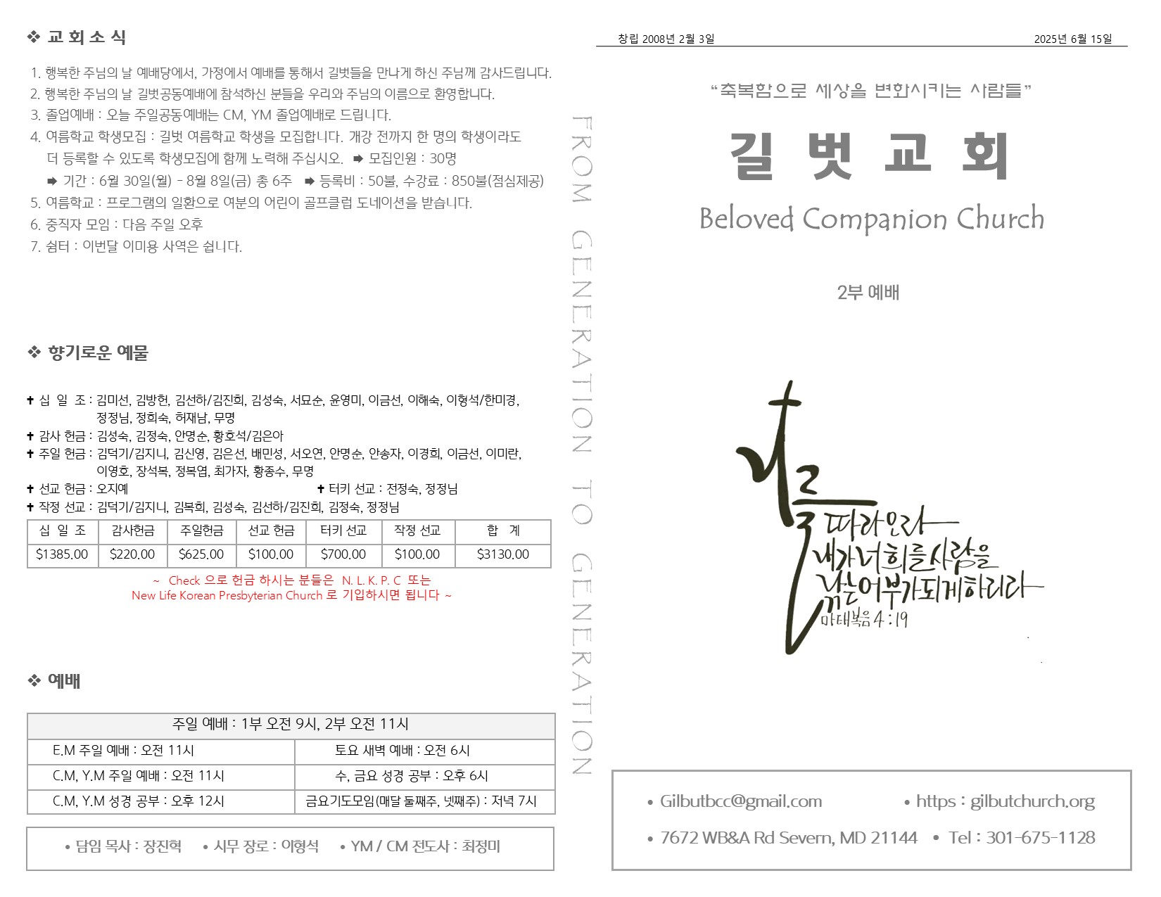 6월 15일 주일 예배 주보 Publish on June 17,2025 | 길벗교회 페이지 정보 작성자 길벗교회 댓글 0건 조회 1,029회 작성일 25-06-17 04:49 목록 본문 6월 15일 주일 예배 주보 이전글6월 22일 주일 예배 주보 25.06.24 다음글6월 8일 주일 예배 주보 25.06.10 댓글 0 댓글목록 등록된 댓글이 없습니다. 목록