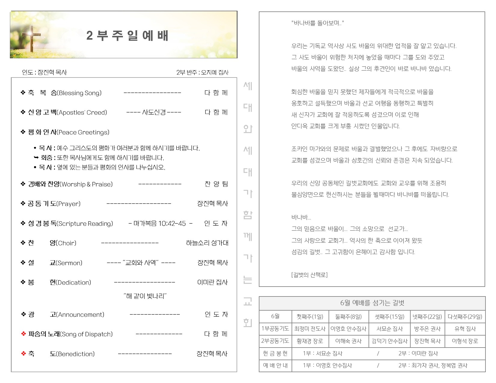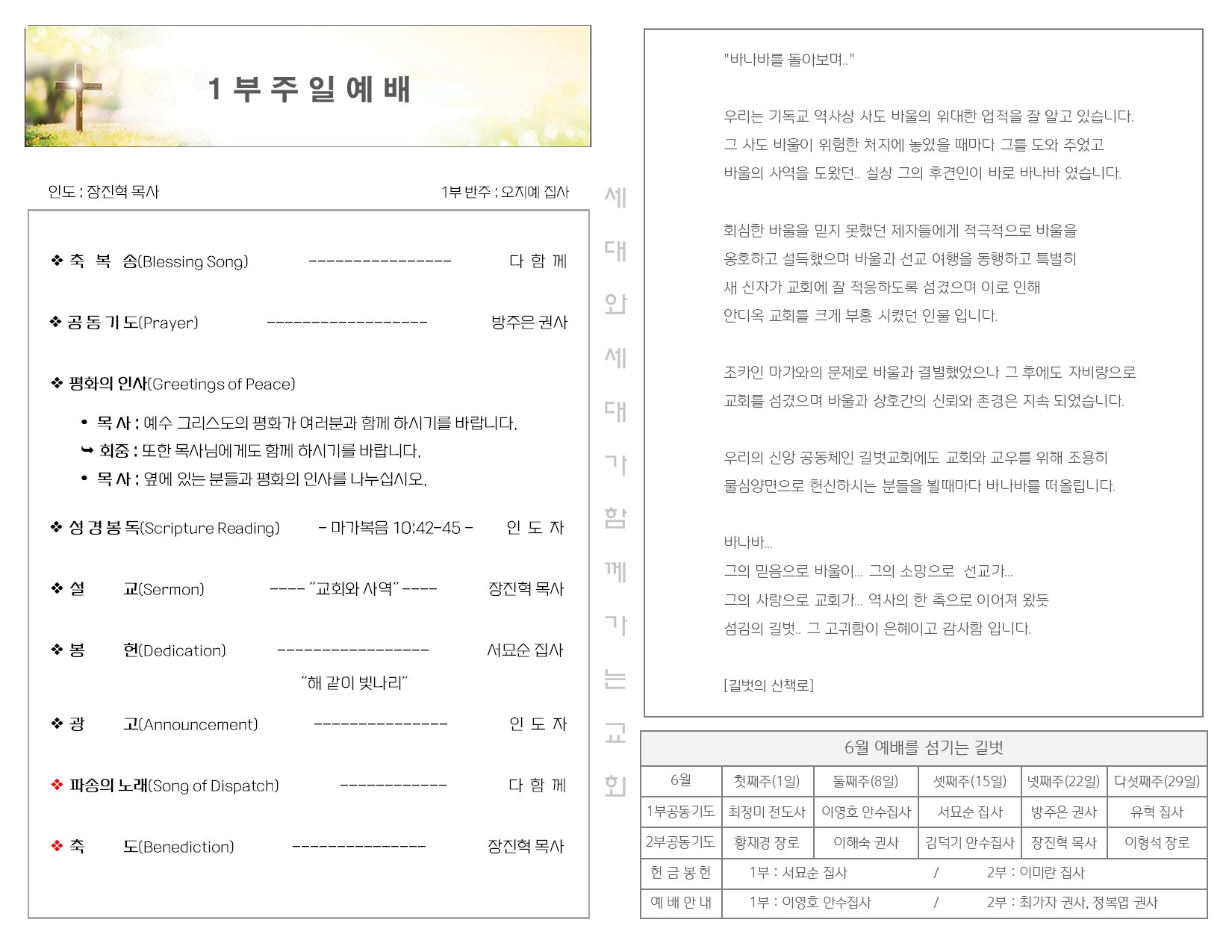 6월 22일 주일 예배 주보 Publish on June 24,2025 | 길벗교회 페이지 정보 작성자 길벗교회 댓글 0건 조회 902회 작성일 25-06-24 03:40 목록 본문 6월 22일 주일 예배 주보 이전글6월 29일 주일 예배 주보 25.07.02 다음글6월 15일 주일 예배 주보 25.06.17 댓글 0 댓글목록 등록된 댓글이 없습니다. 목록