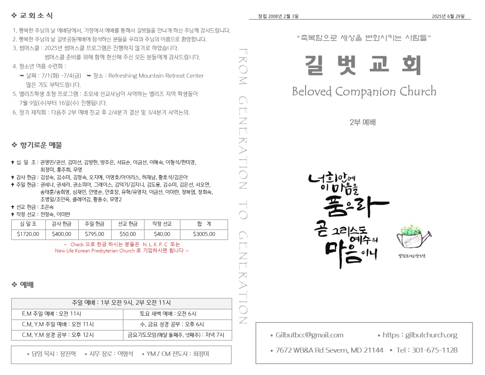6월 29일 주일 예배 주보 Publish on July 02,2025 | 길벗교회 페이지 정보 작성자 길벗교회 댓글 0건 조회 842회 작성일 25-07-02 17:44 목록 본문 6월 29일 주일 예배 주보 이전글7월 6일 주일 예배 주보 25.07.08 다음글6월 22일 주일 예배 주보 25.06.24 댓글 0 댓글목록 등록된 댓글이 없습니다. 목록
