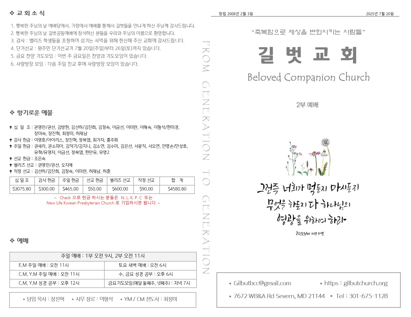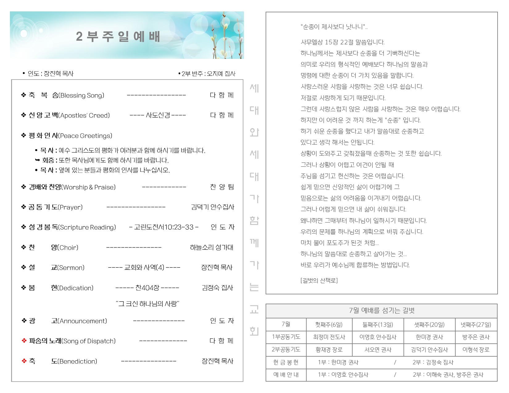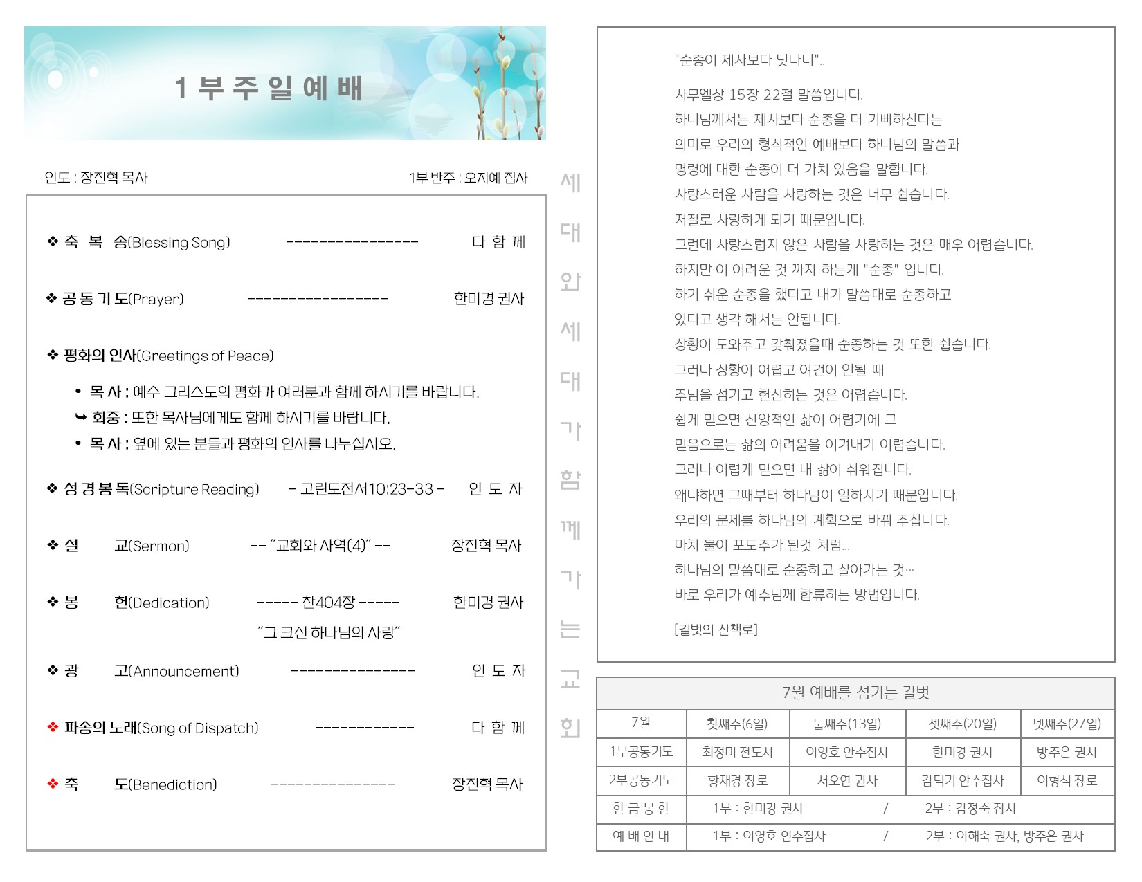 7월 20일 주일 예배 주보 Publish on July 22,2025 | 길벗교회 페이지 정보 작성자 길벗교회 댓글 0건 조회 755회 작성일 25-07-22 16:29 목록 본문 7월 20일 주일 예배 주보 이전글7월 27일 주일 예배 주보 25.07.29 다음글7월 13일 주일 예배 주보 25.07.16 댓글 0 댓글목록 등록된 댓글이 없습니다. 목록