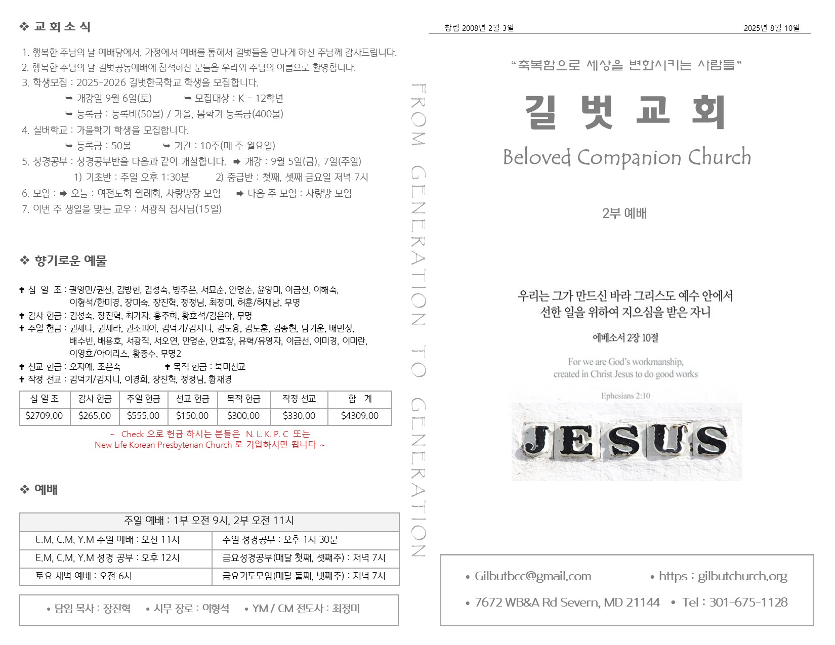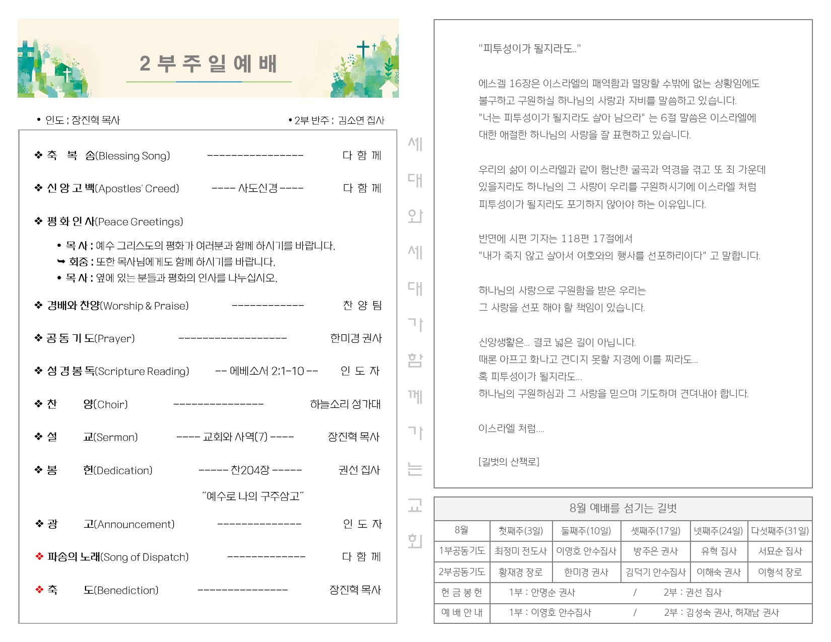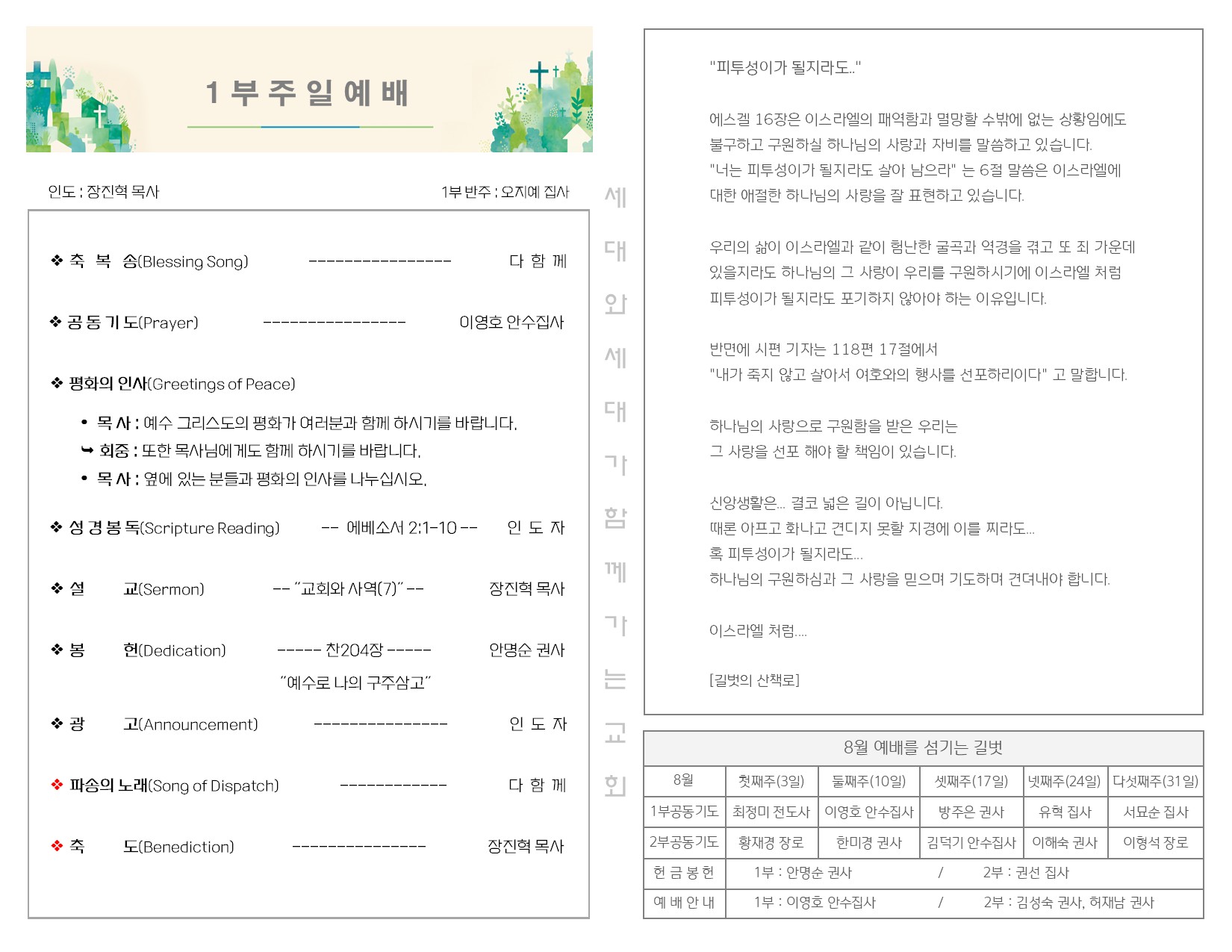8월 10일 주일 예배 주보 Publish on August 12,2025 | 길벗교회 페이지 정보 작성자 길벗교회 댓글 0건 조회 567회 작성일 25-08-12 04:17 목록 본문 8월 10일 주일 예배 주보 이전글8월 17일 주일 예배 주보 25.08.18 다음글8월 3일 주일 예배 주보 25.08.06 댓글 0 댓글목록 등록된 댓글이 없습니다. 목록