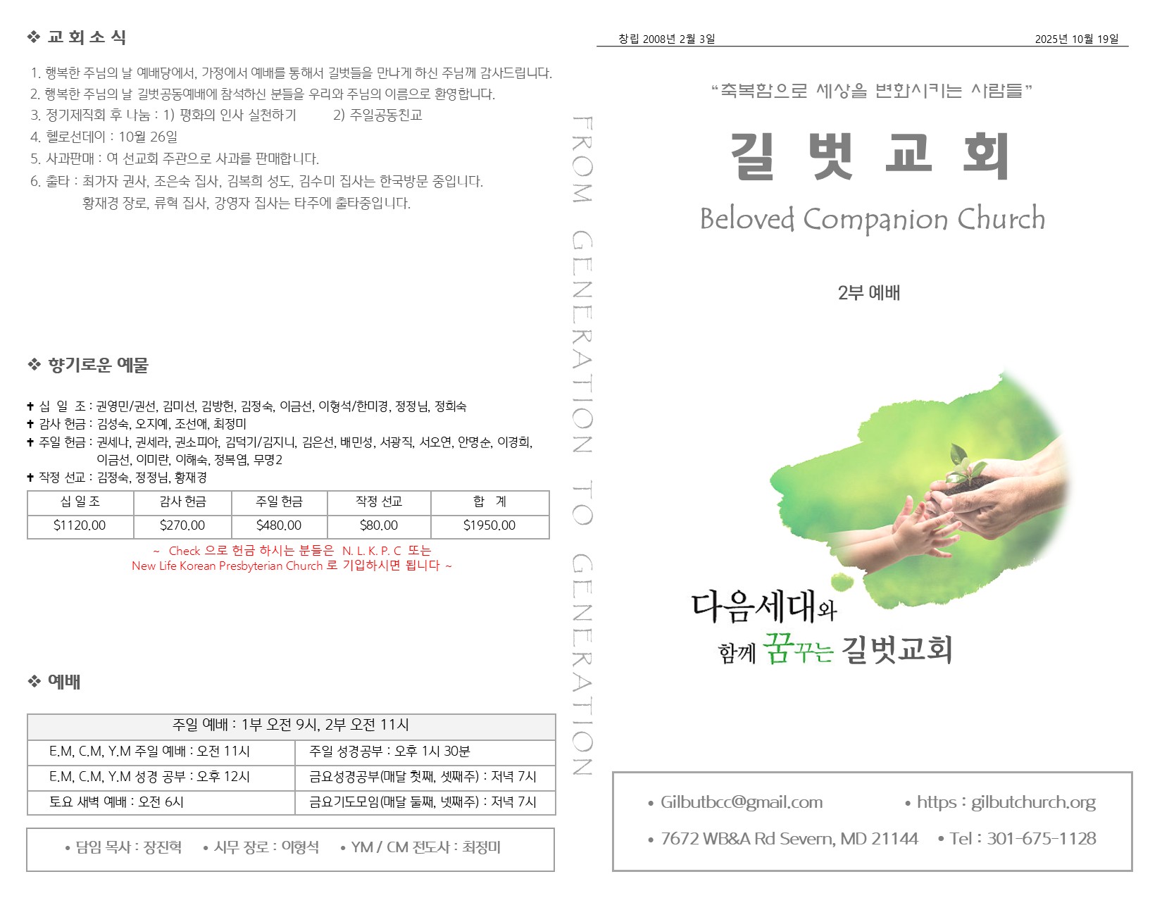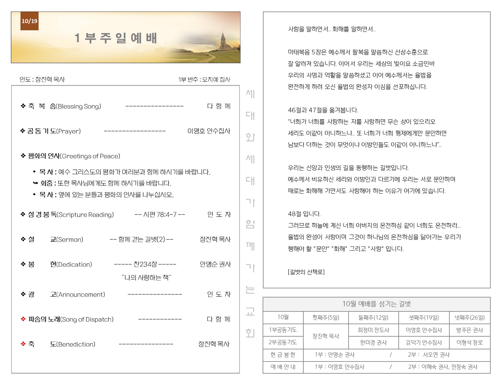 10월 19일 주일 예배 주보 Publish on October 21,2025 | 길벗교회 페이지 정보 작성자 길벗교회 댓글 0건 조회 222회 작성일 25-10-21 04:05 목록 본문 10월 19일 주일 예배 주보 이전글10월 26일 주일 예배 주보 25.10.28 다음글10월 12일 주일 예배 주보 25.10.14 댓글 0 댓글목록 등록된 댓글이 없습니다. 목록