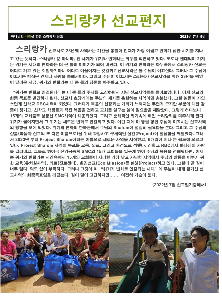 스리랑카 선교편지 페이지 정보 작성자 길벗교회 댓글 0건 조회 970회 작성일 23-07-11 05:40 목록 본문 스리랑카를 위해 힘써 기도해주십시요. 한치 앞을 볼수 없으니 깊은 풍랑속에 있지만 선교사님 내외분은 예수님을 의지하여 앞으로 나아가고 있답니다. 이전글스리랑카 선교편지 23.09.06 다음글페루 단기 선교 23.06.21 목록 댓글 0 댓글목록 등록된 댓글이 없습니다.